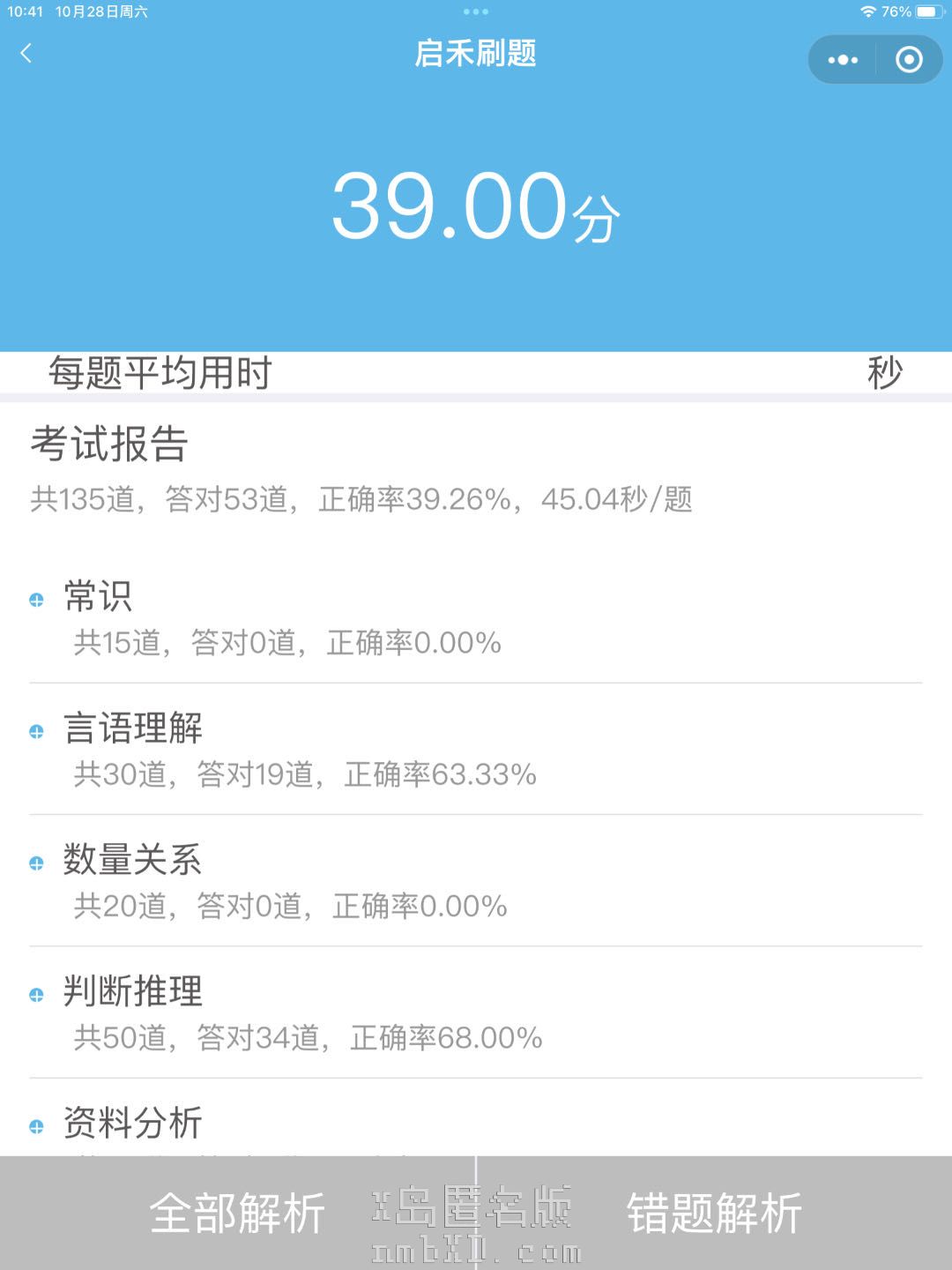 言语72%判断68% 拉了