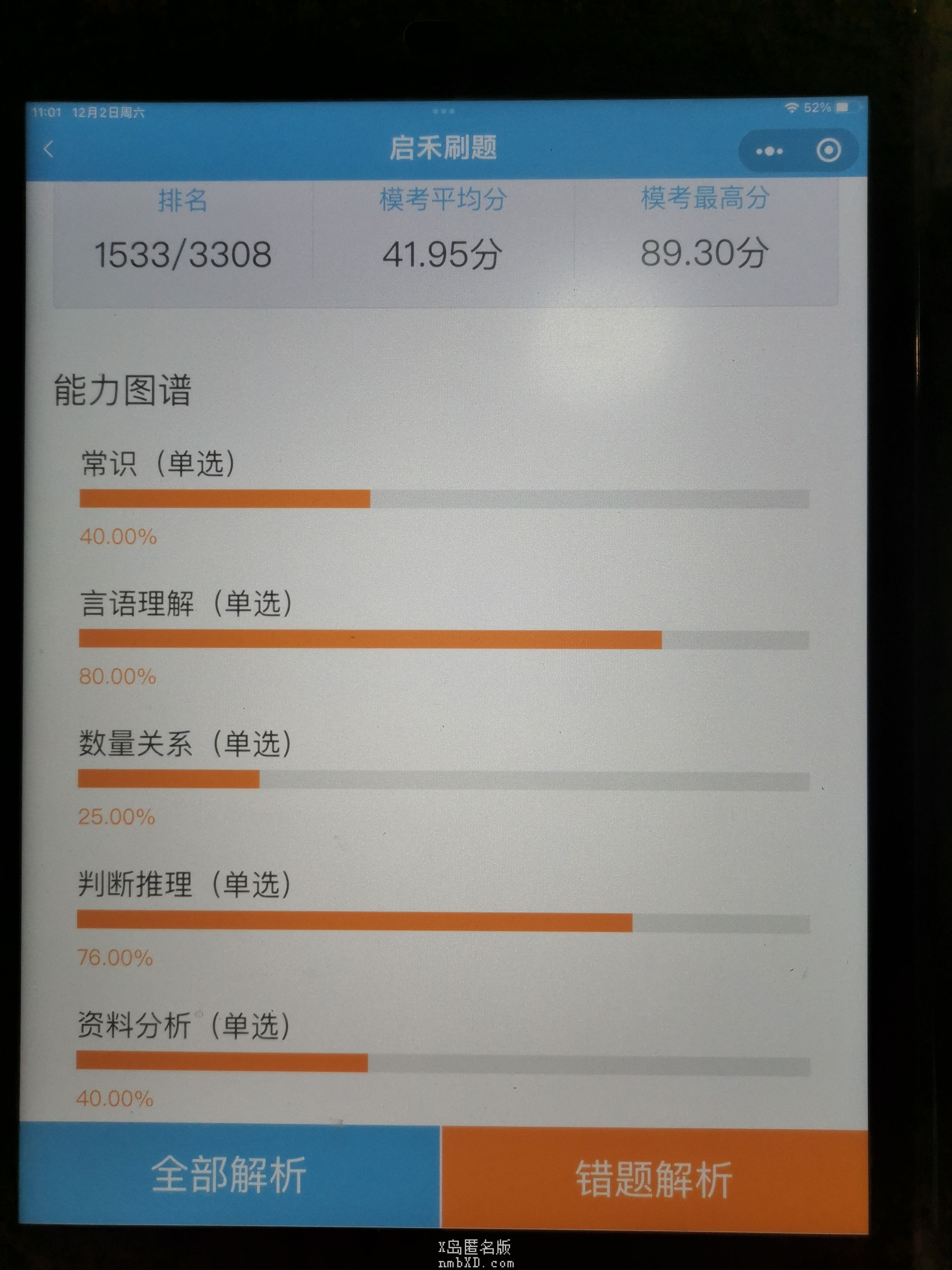 资料分析写了整整35分钟还40%