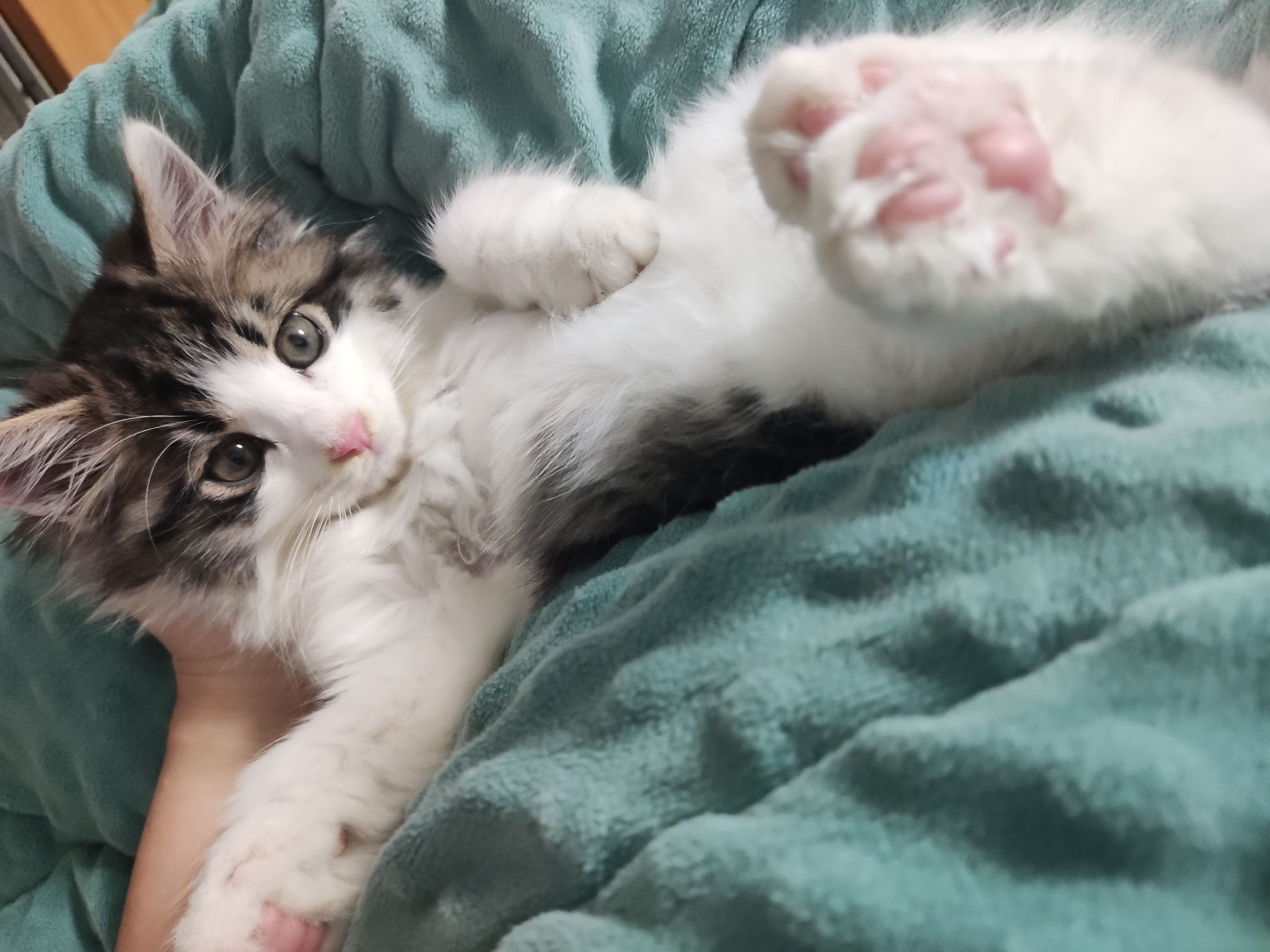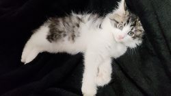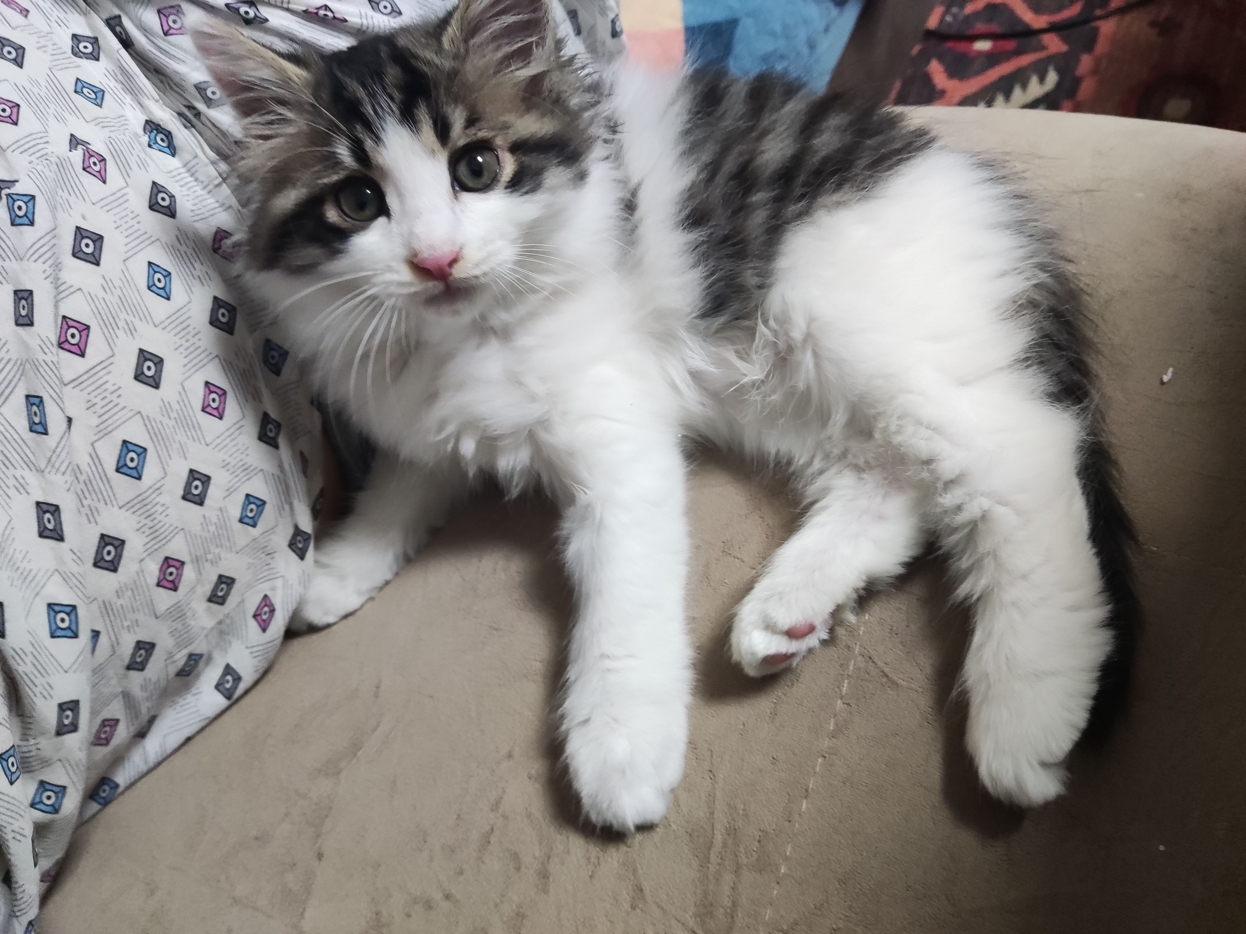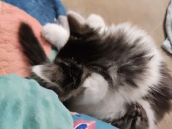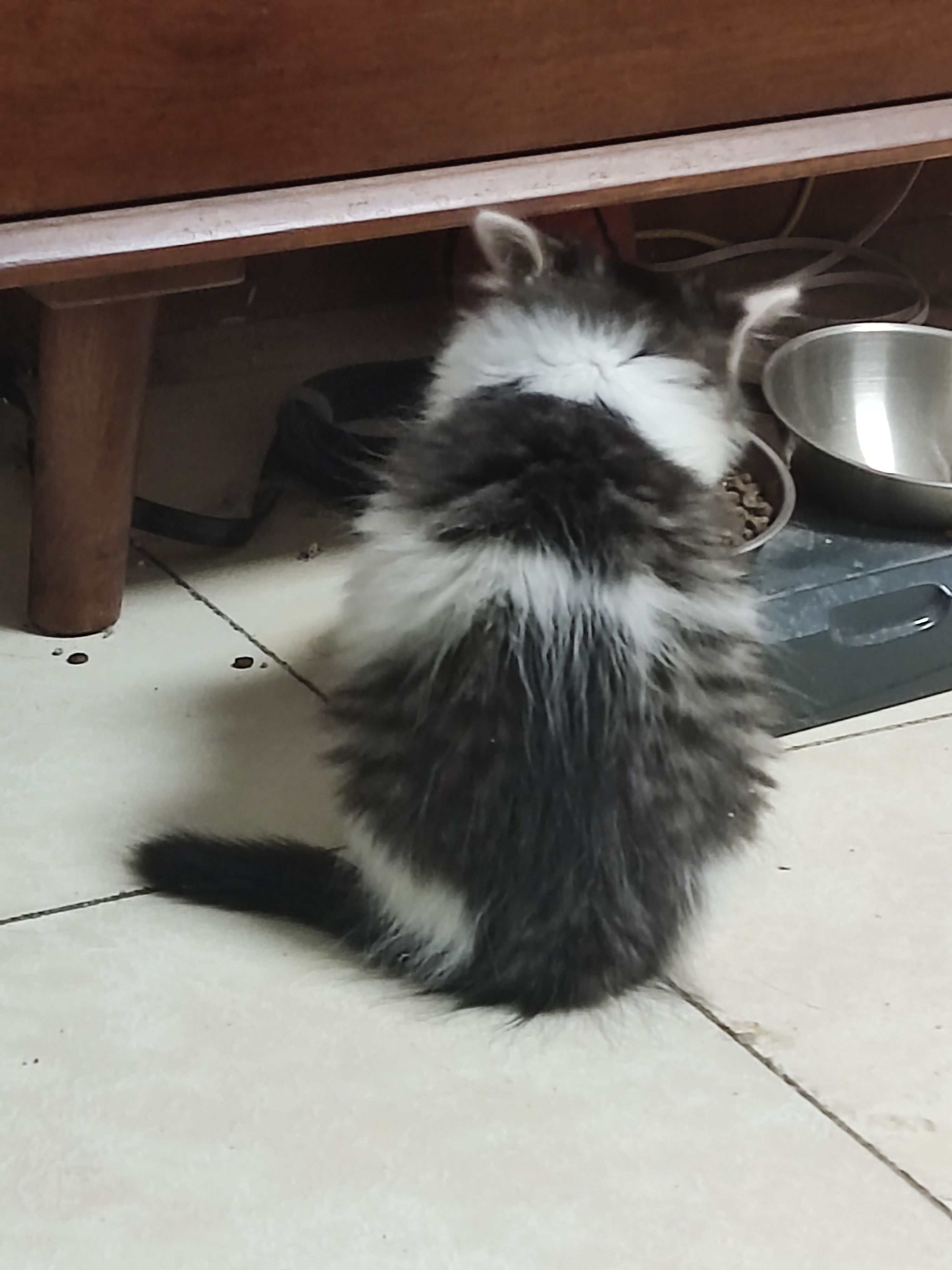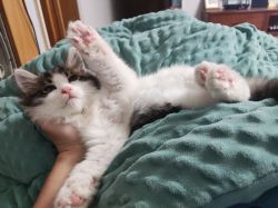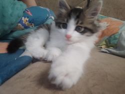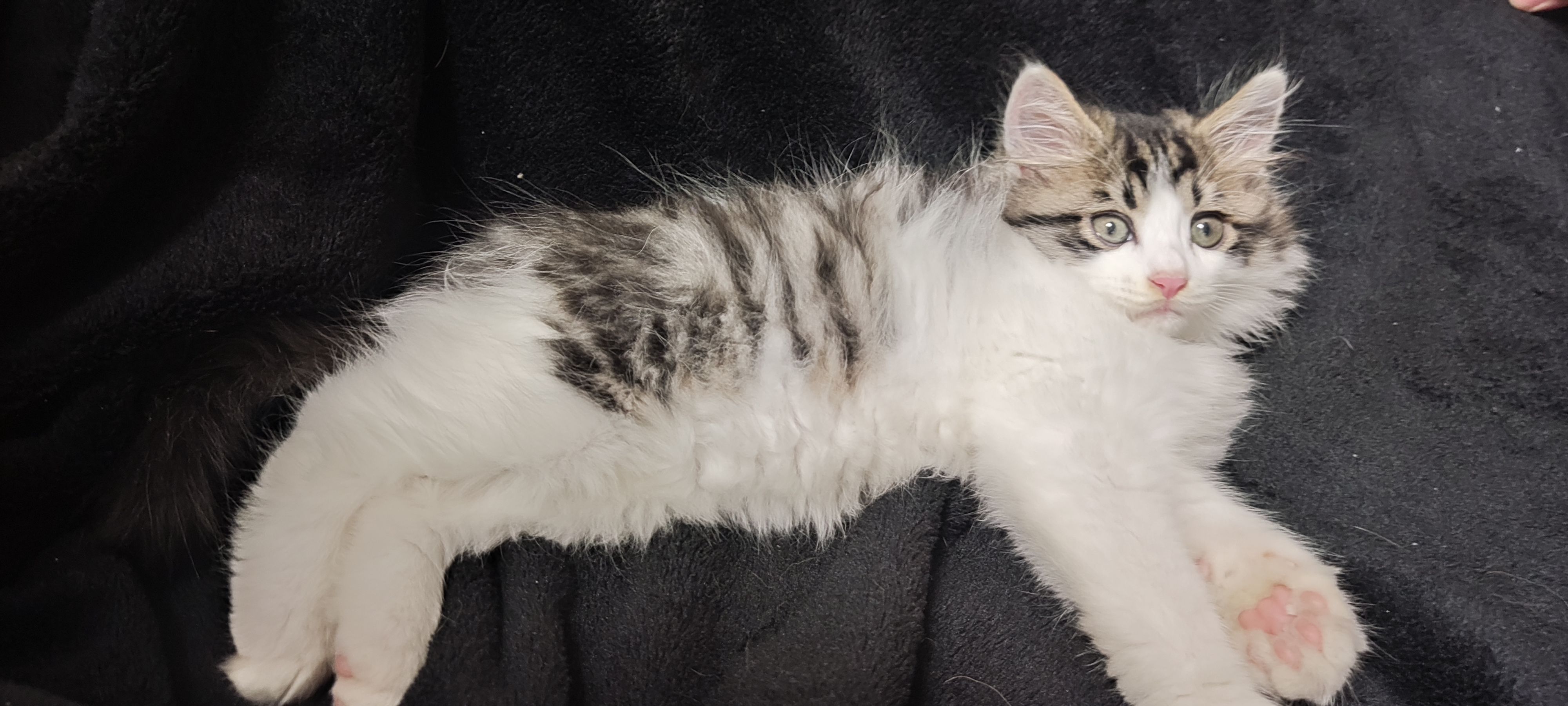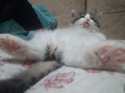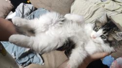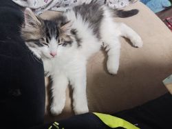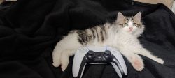 缪缪应该不是野生的小猫,花纹有点虎斑的感觉又是长毛,直接会用猫砂而且还很会社交,而且也不挑食
