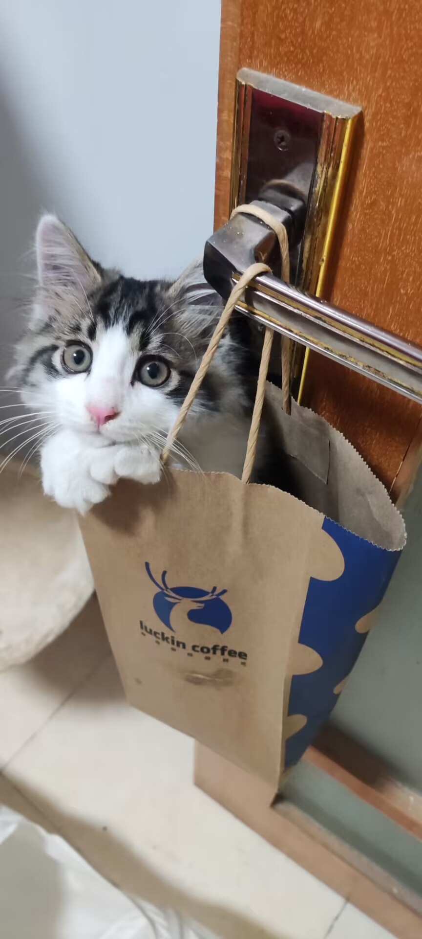 前天因为调皮被装进咖啡袋挂起来的缪
