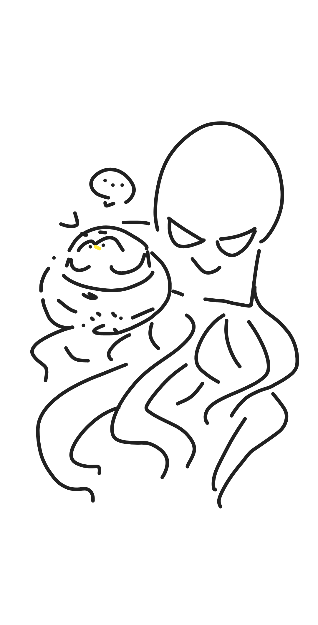 *因为大章鱼长得太怪反而有些平静的小企鹅