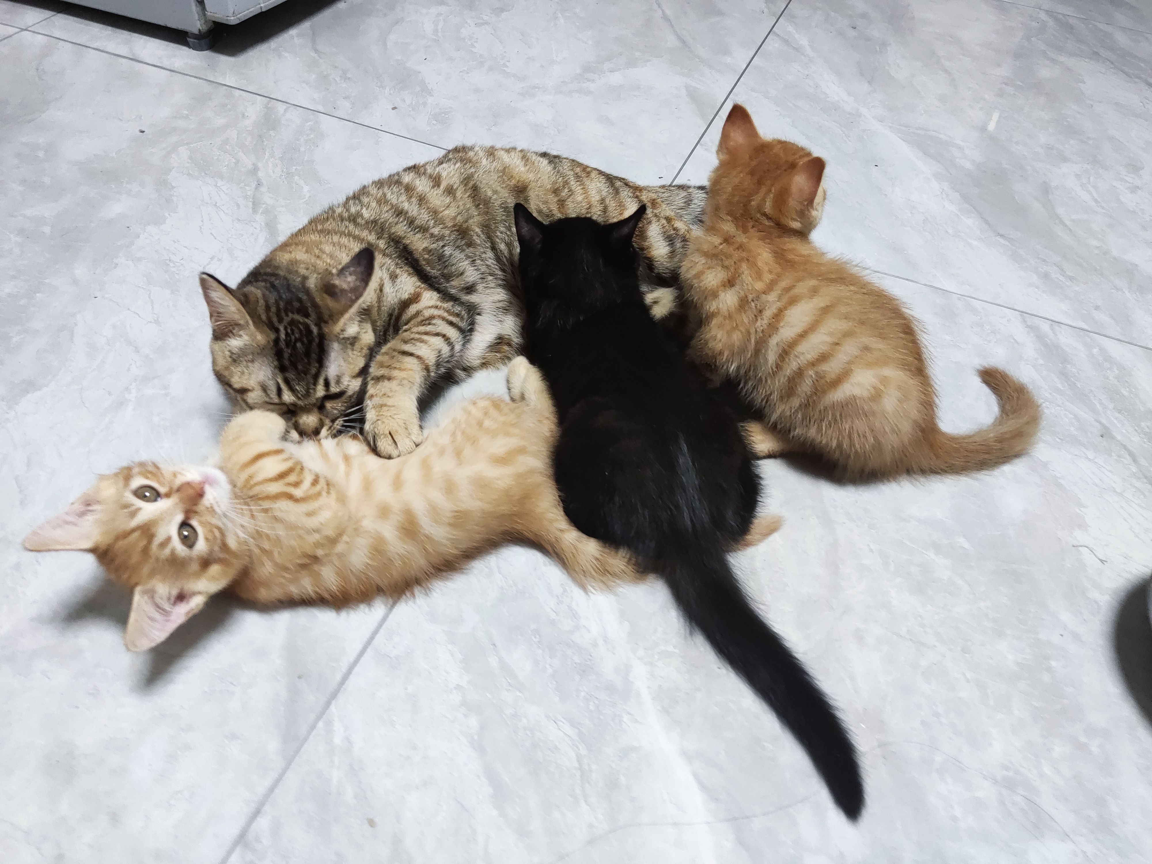 别的小猫一个月都开始断奶了,这三个还没断奶呢