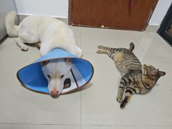 带圈了 狗脸旁边破了一块老是自己挠 直接带去把那一块毛剃了上上药