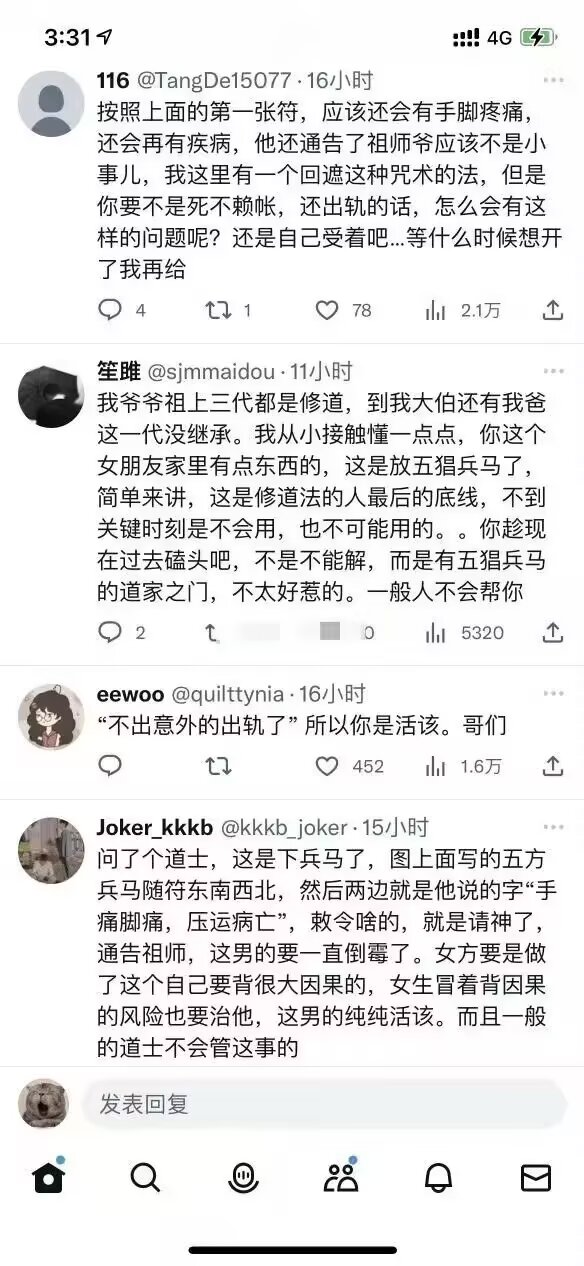 后来还有被仇仙找上门的,就是被打死的小动物有怨气,上门来寻仇了。找不到凶手就去骚扰凶手的后代。有很多法师都不想接这种活,杀了小的来了老的怎么办?有时候报应不落你身上,会落你后代身上啊……做人果然还是要积德行善