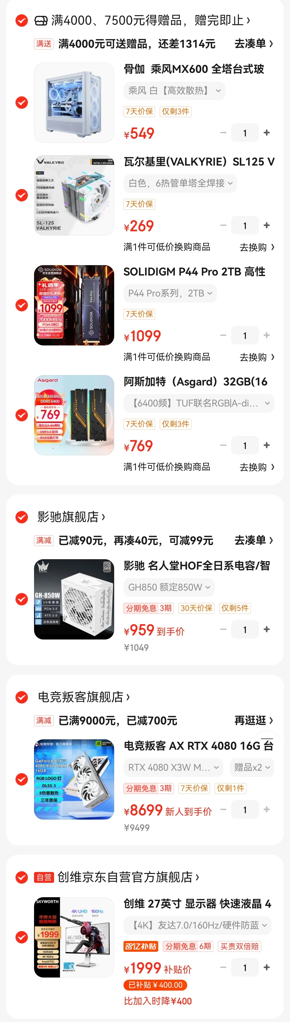 需求预算和这个差不多,新手不太了解参照着选了一套,麻烦肥哥帮忙看一下有没有需要优化的地方,最好是能凑满4000送装机服务( ゚∀。)7