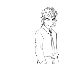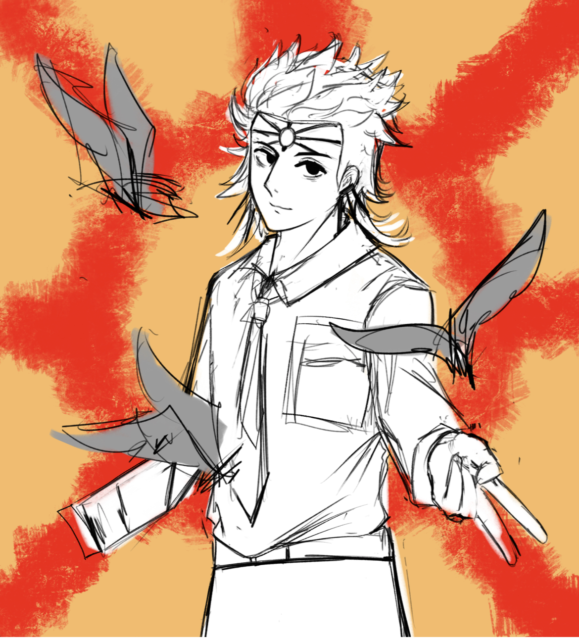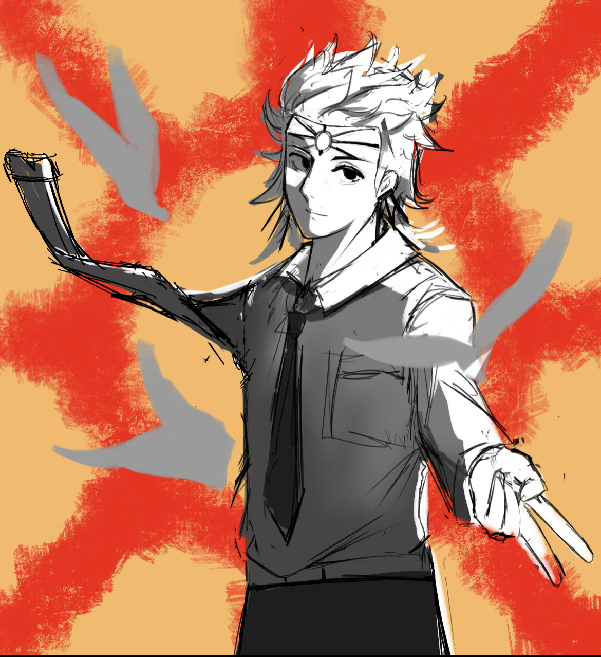 因为想画凤凰人所以紧急小学了一下电锯人画风( ゚∀。)σ结果是这样,有点瘦感觉,左边的空当然是留给阿心的。