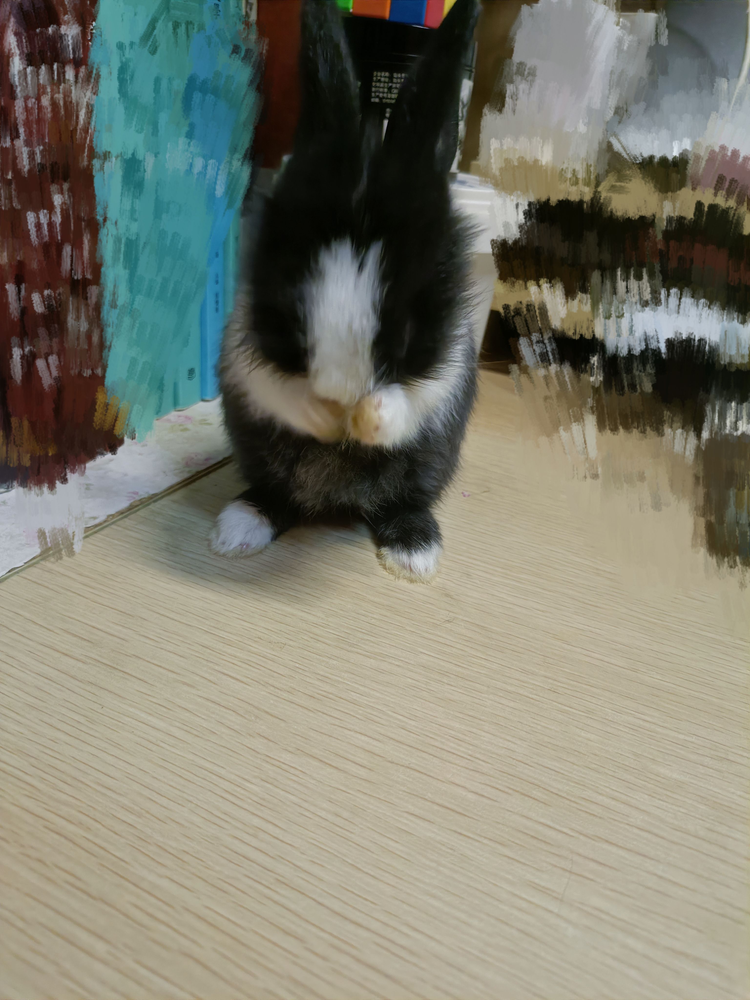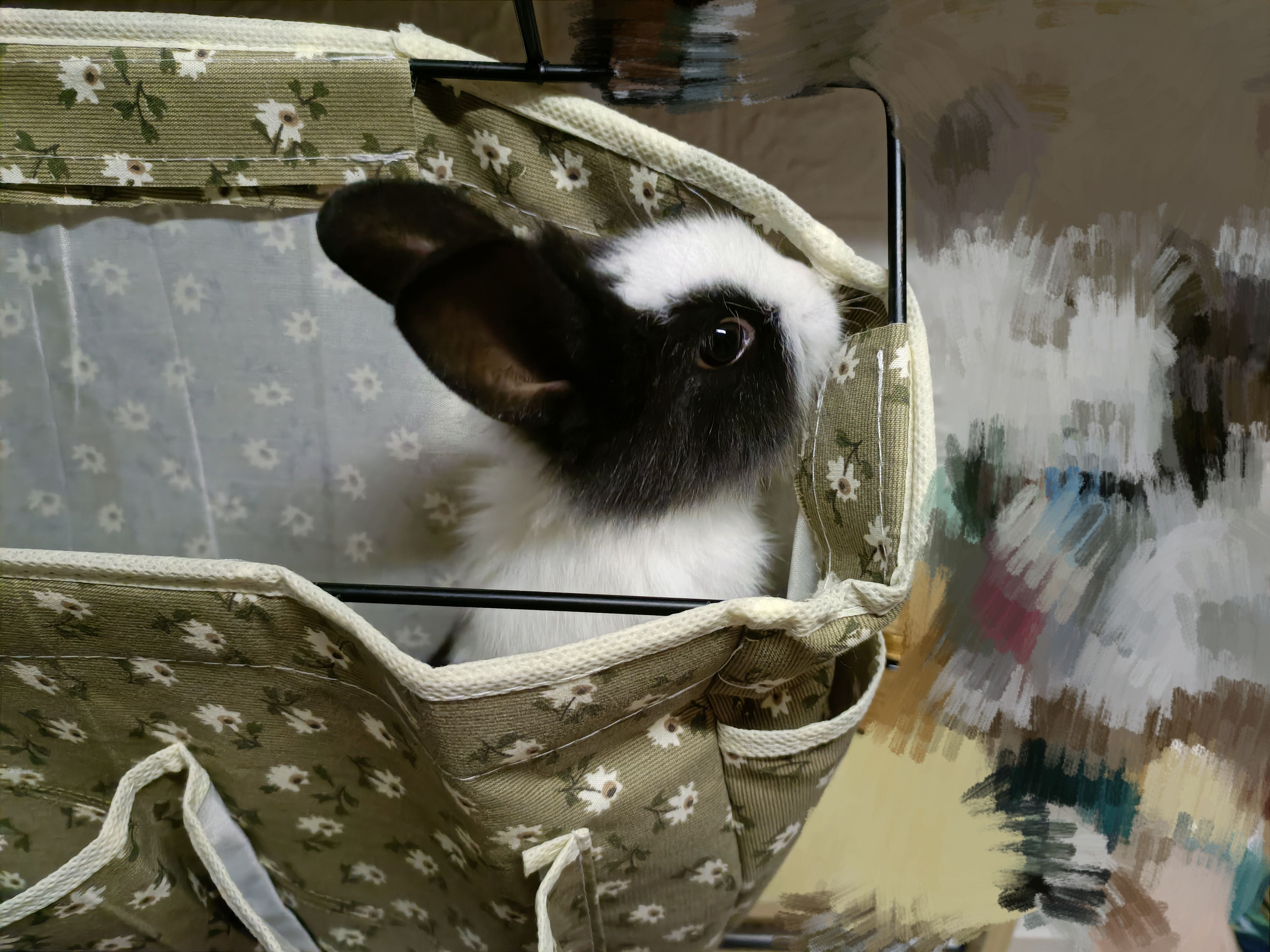 还是昨晚的兔 给它布置活动地的时候放进不用的置物袋里消停一会儿