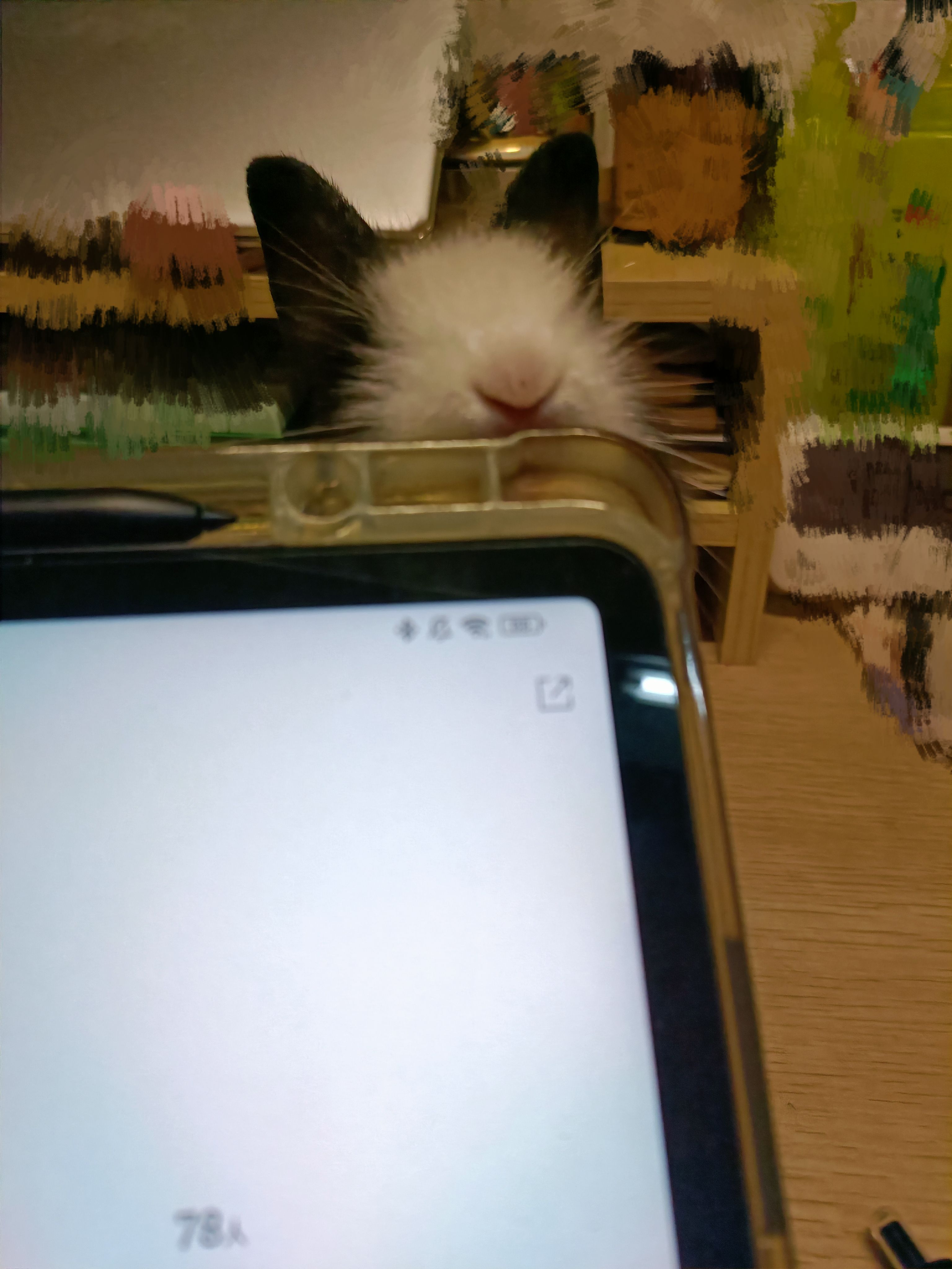 昨晚刚到家呆呆的 今天是混世魔王兔(正在试图攻击平板)