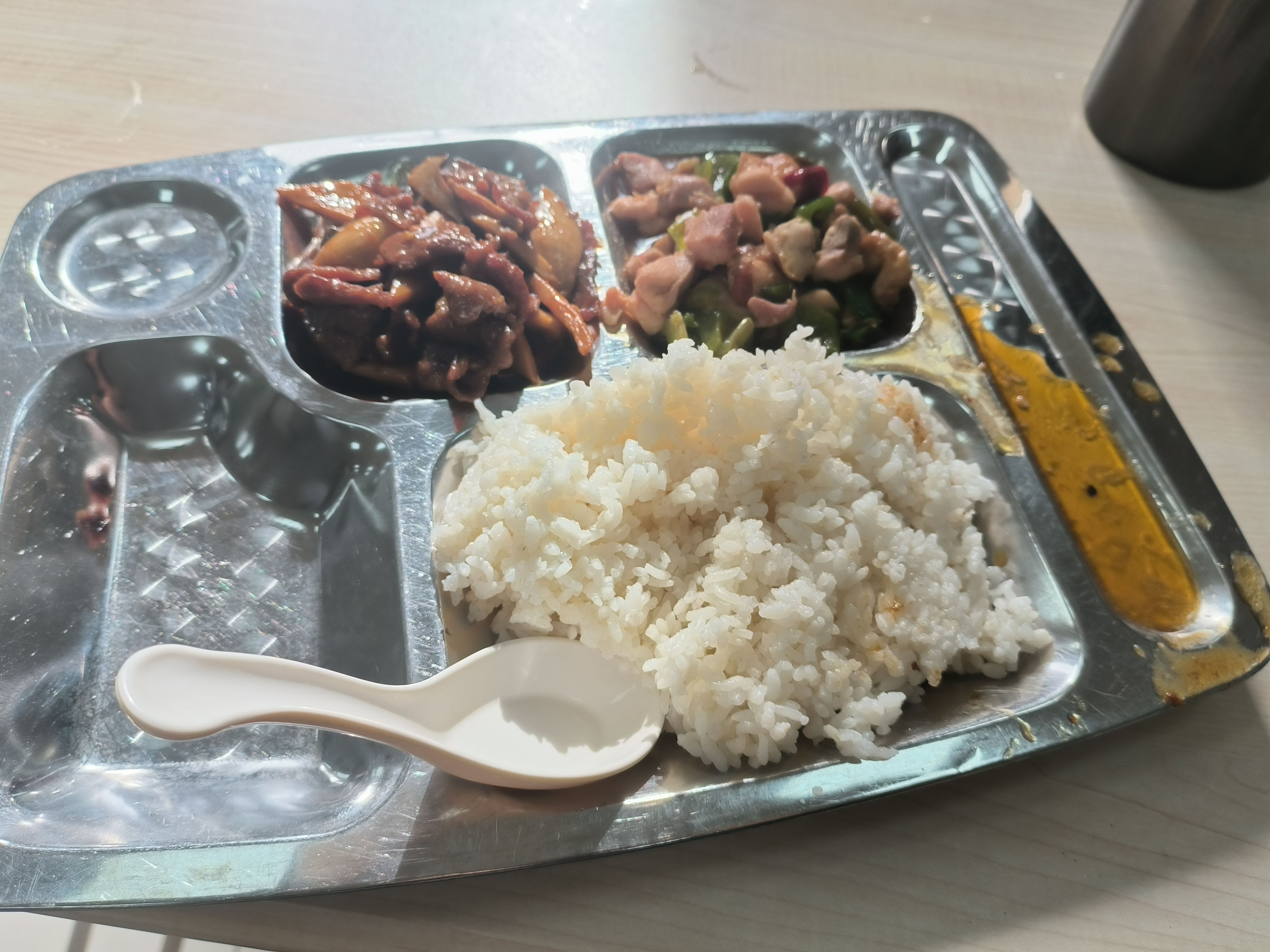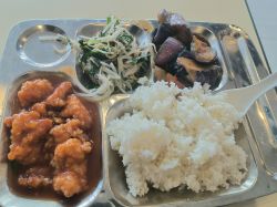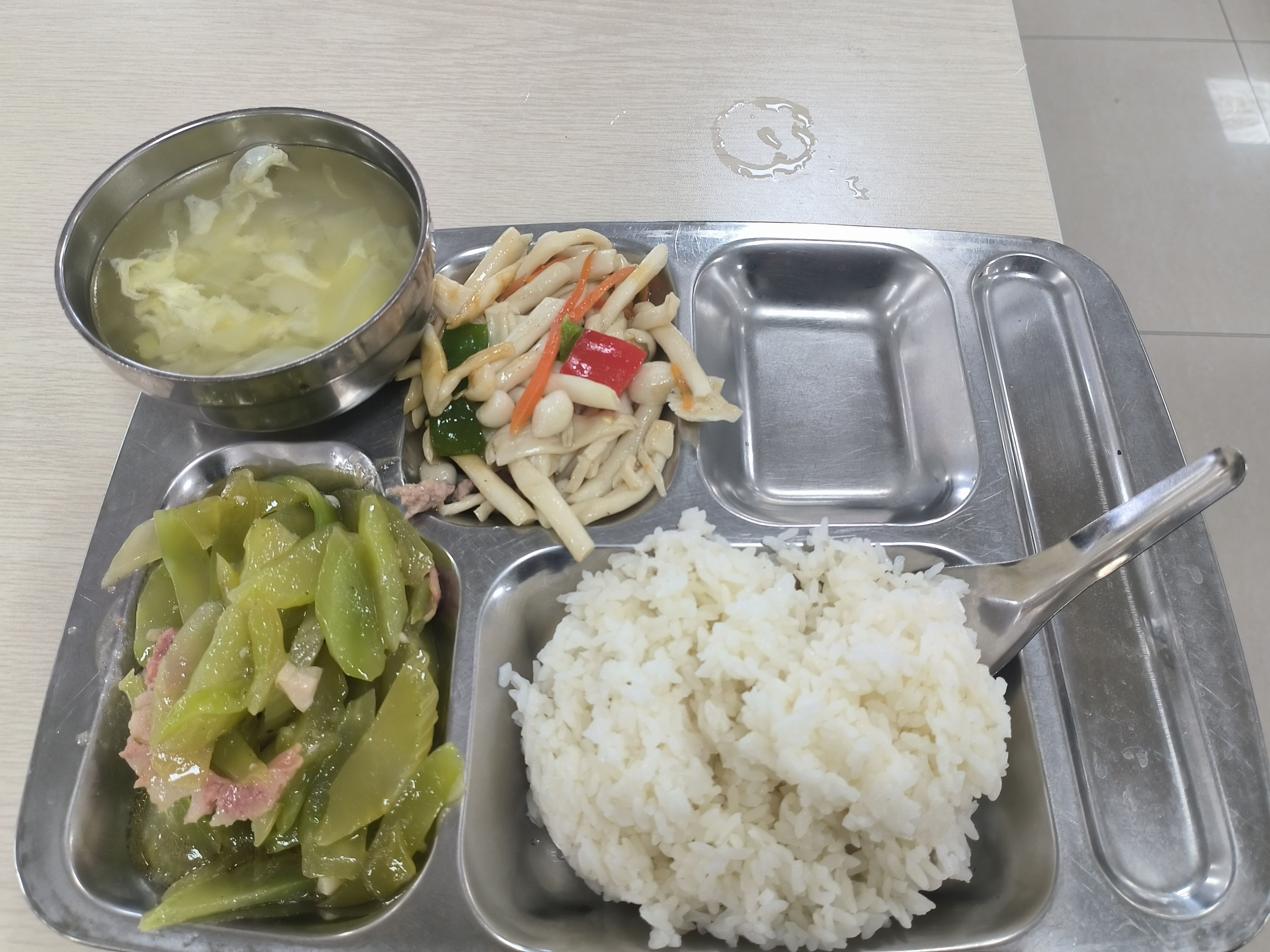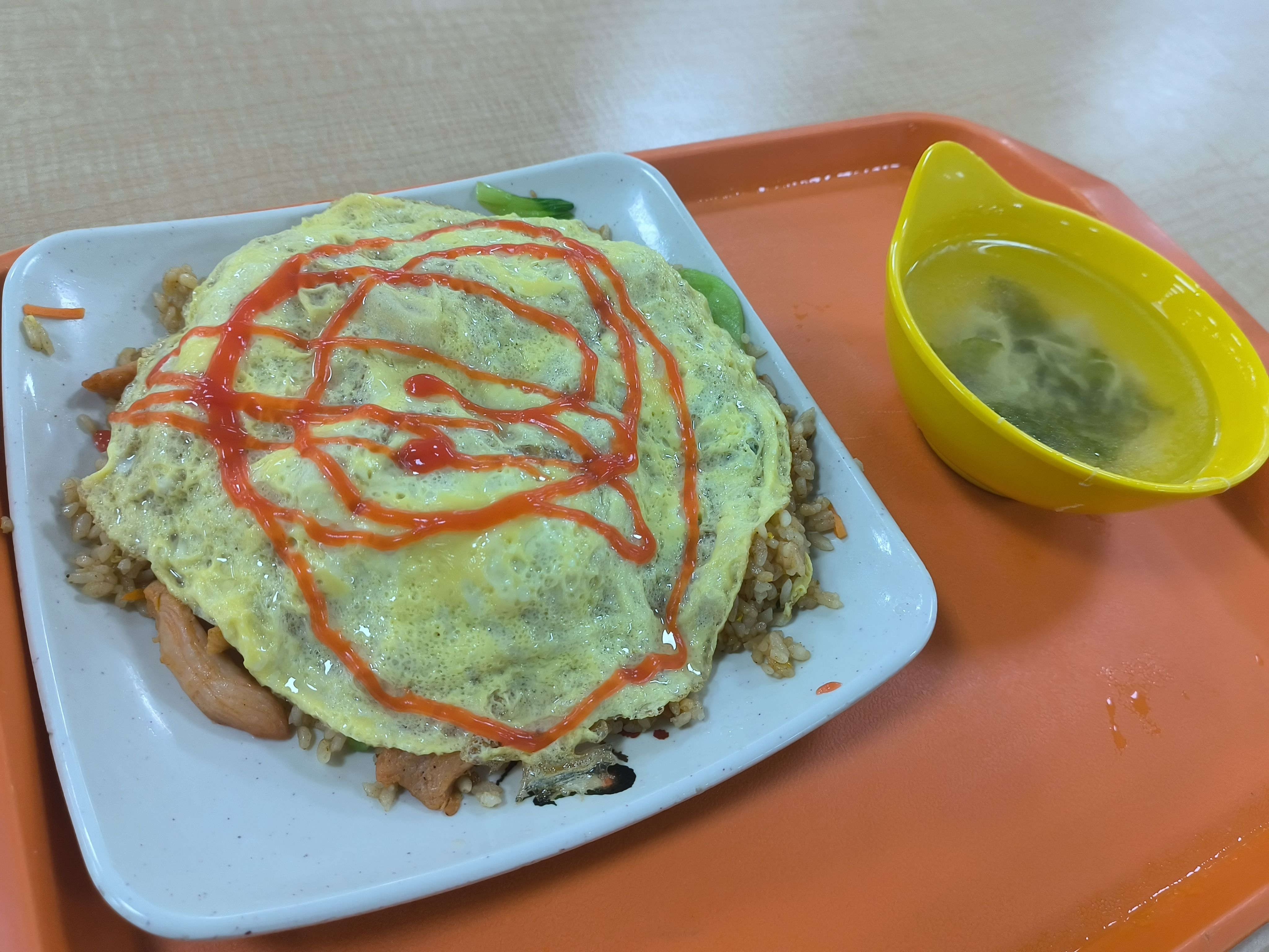 鸡排、木耳青菜、西红柿炒蛋、紫菜蛋花汤|∀` )