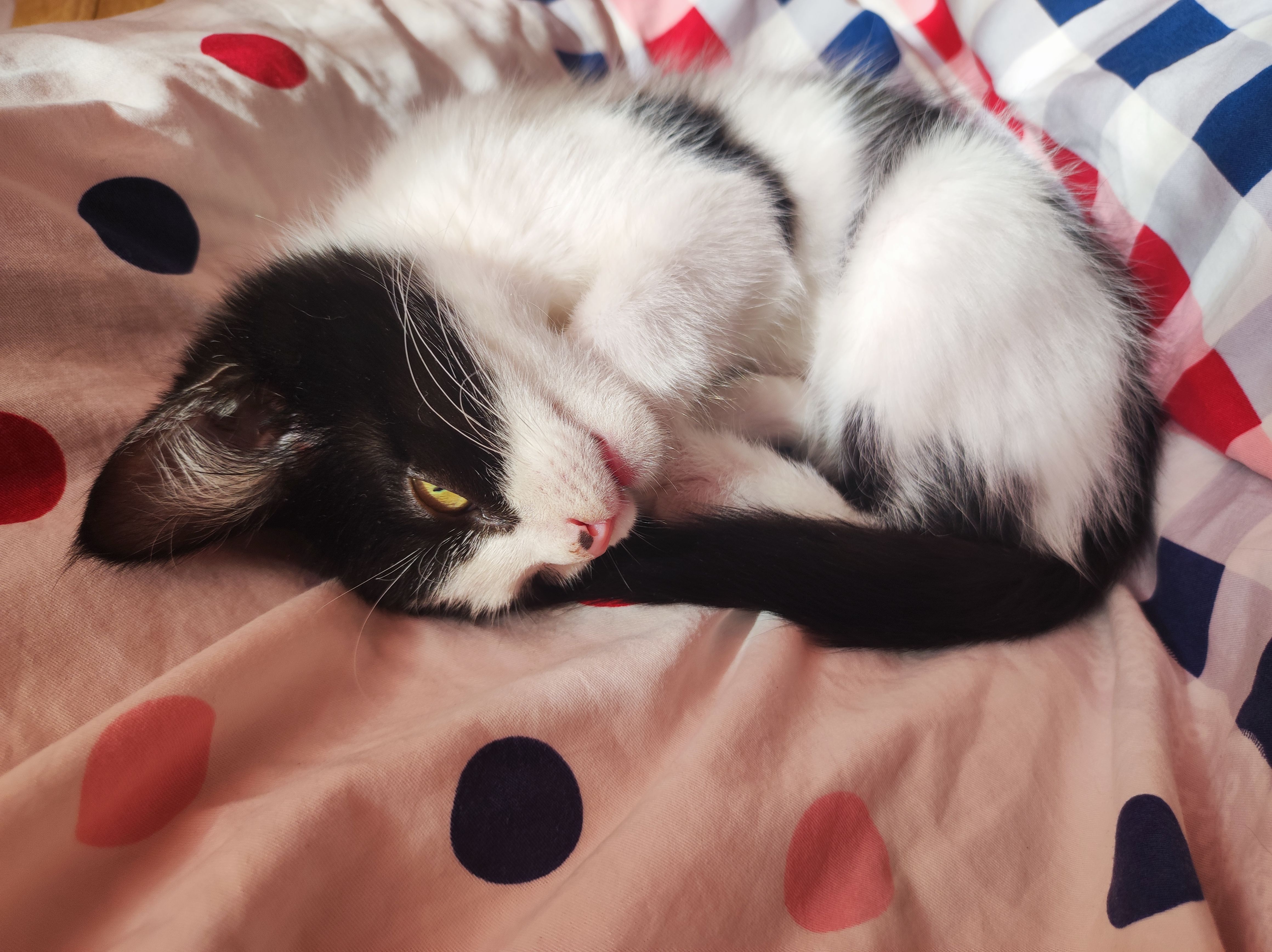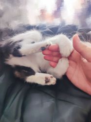 这会发现肚子上还有两根毛有墨,用纸沾了水擦,大部分擦掉了,坏小猫跑了不让擦了。