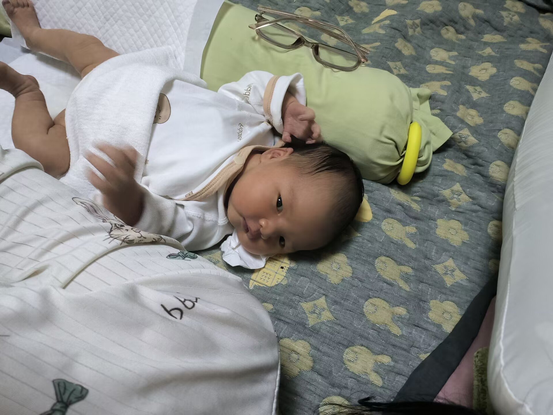 这次有经验了,防止小小肥二代给自己脸挠花,出生第二天就给她指甲磨平。