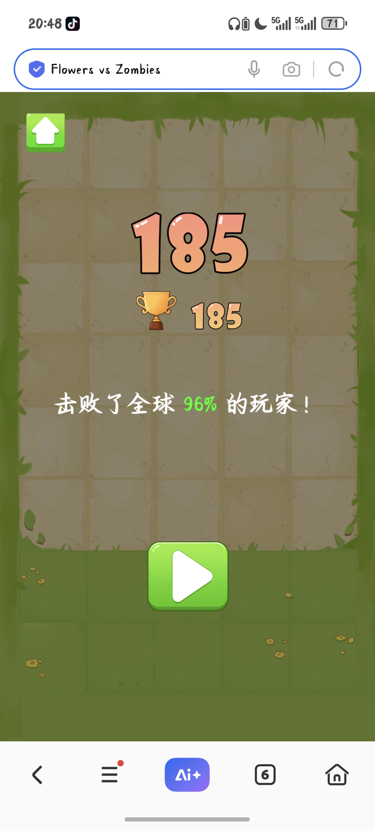 网页版没有广告复活,得上微信小程序,花花僵尸吧