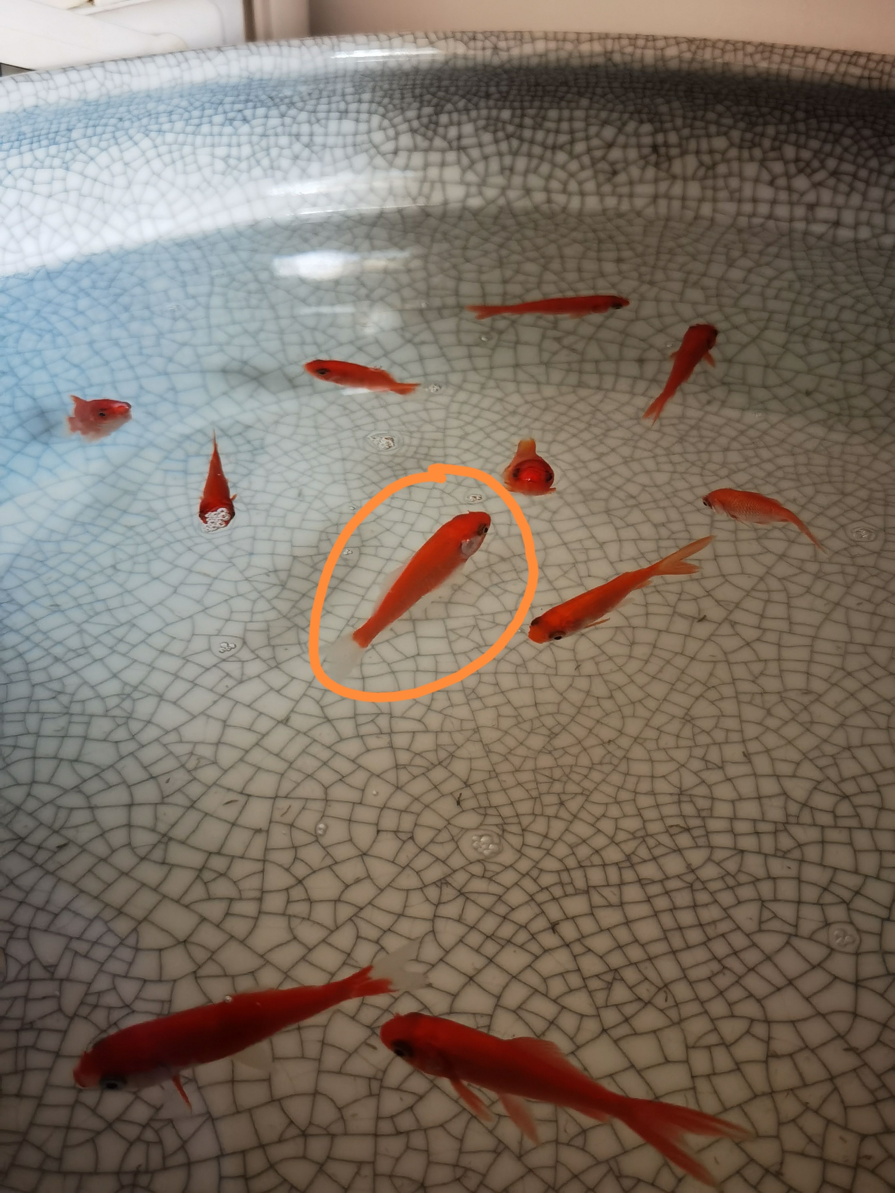 它是鱼缸里最大的几条鱼之一了(*´д`)不会是靠吃同伴才长这么大的吧