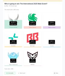 ( ゚∀。)意思是战车赢了猎鹰pv,还是不怎么被看好嘛。虽然我感觉可能有一部分看好中国队的票都集到xg去了,但是战车也太少了吧。