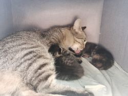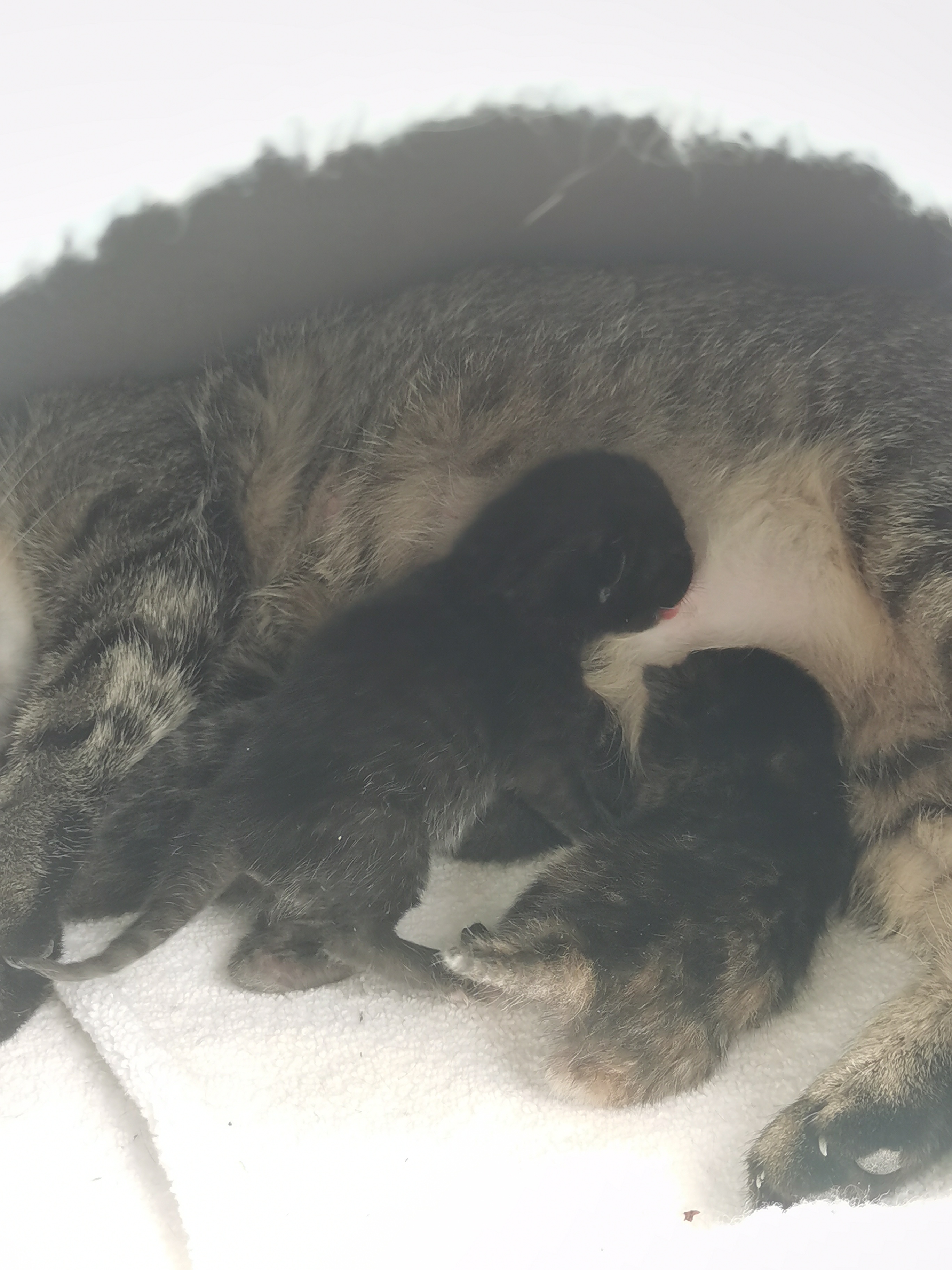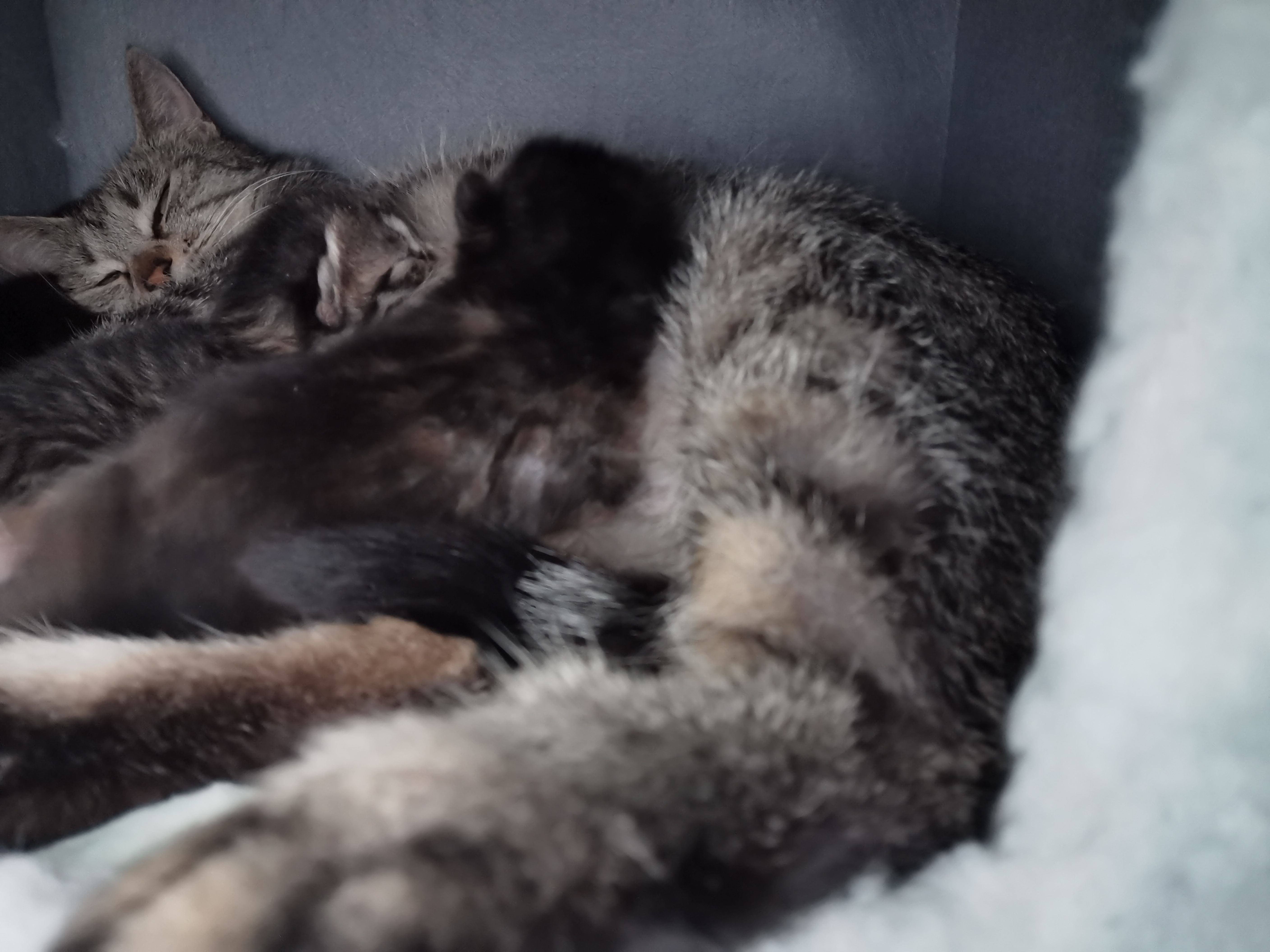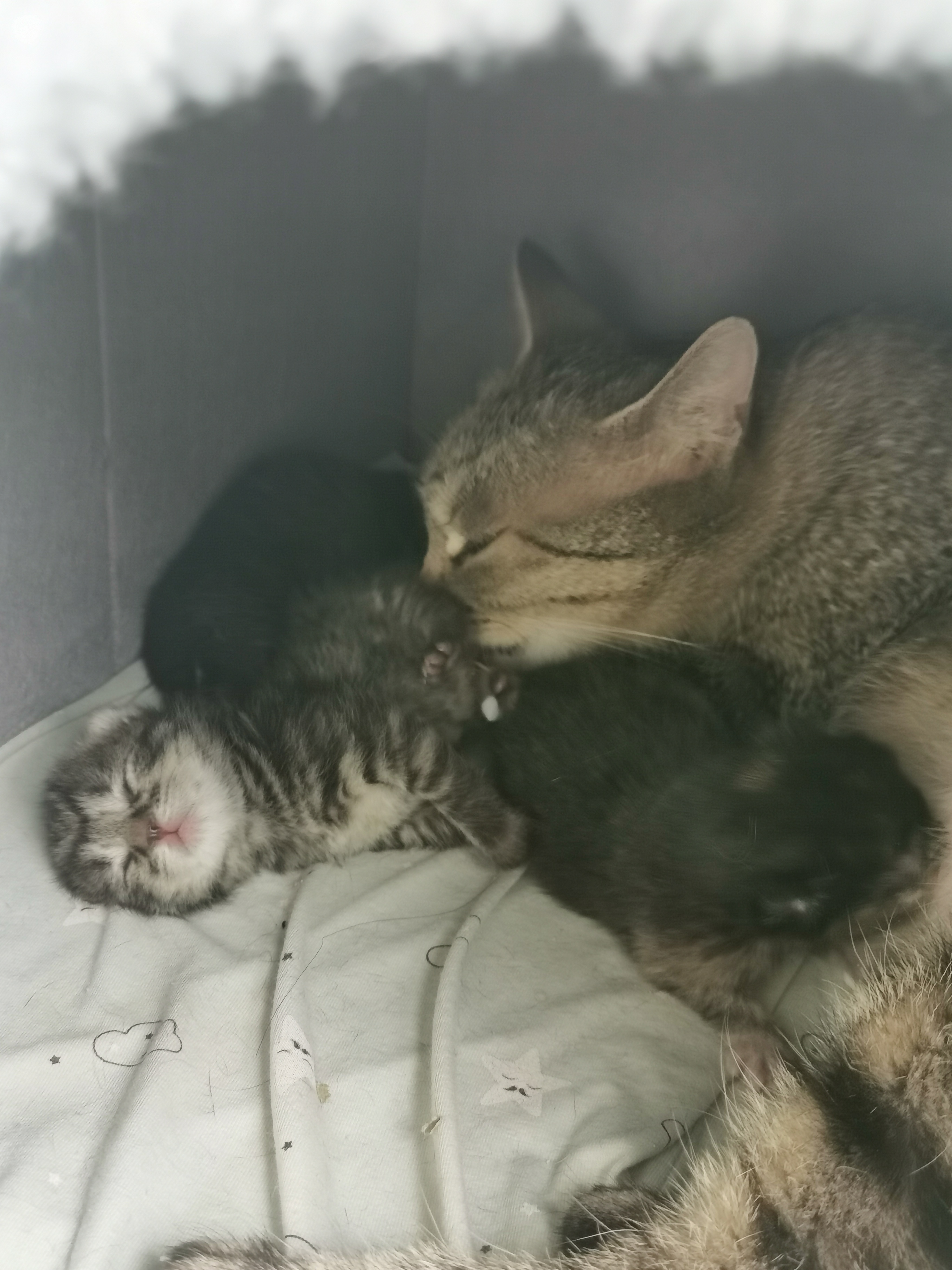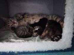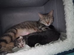 一共生了三只一只黑的一只狸花一只玳瑁