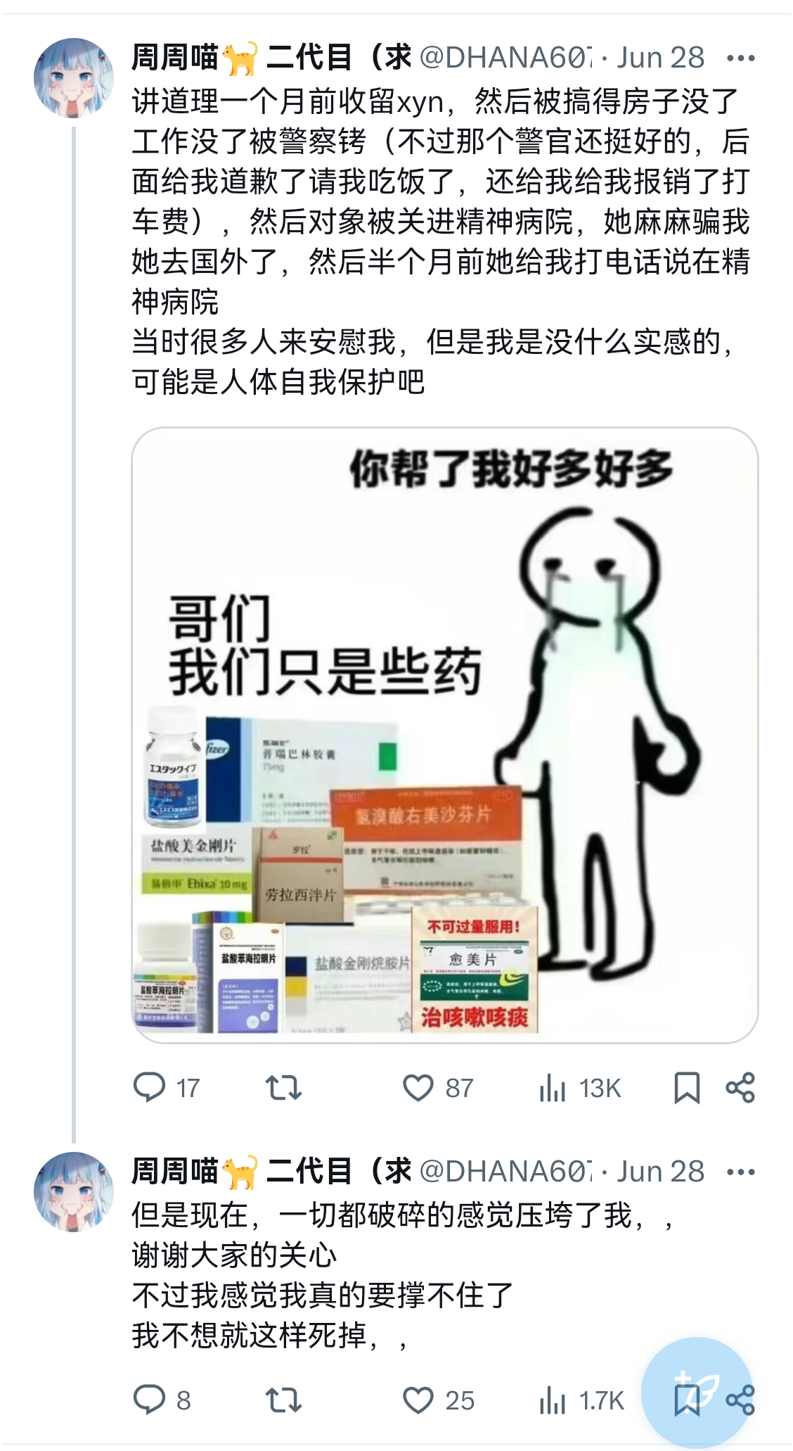 可有心理问题应该去医院看病,不是把钱给药贩子然后霍霍自己