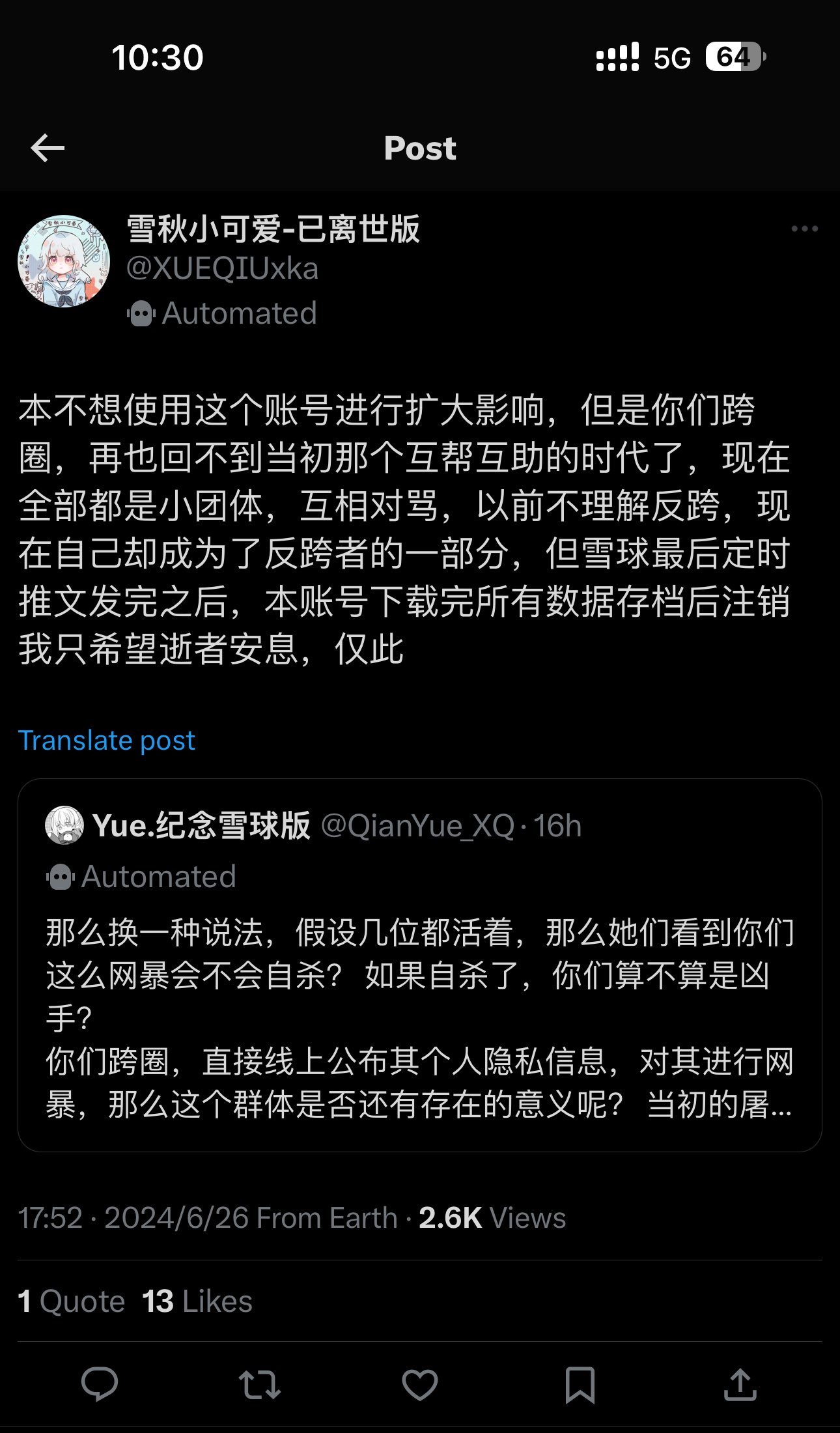 说实话吧,看前面发的截图,好几个都说自己“疑似双相/抑郁”“双相/抑郁未确诊”,个人感觉这帮子小屁孩只是想给自己贴个标签彰显独特个性,哪怕去医院了也不见得会配合治疗(*゚ー゚),别折腾医生了,让他们自生自灭吧。