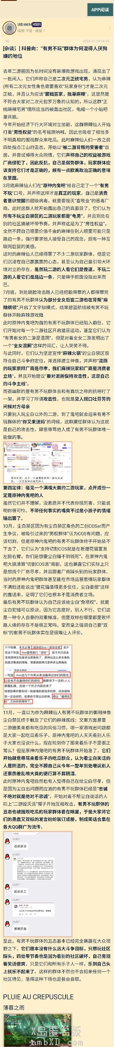 因为从sb的雷蒙夫人洗脑戒指到yj的有男不练小英雌再到kl的CV风波,基本上都是泥潭手综的麻辣仙人在带头冲锋,另一个串有说法是部分MXZ无法挽回米桑的颓势而变成麻辣仙人把所有二游拉下水,再把一些质量一般的后宫向二游捧上神坛来搞浑水,现在这帮人已经开始第三阶段解构麻辣为“you number one”和“有男偷玩”来恶臭化那些有正当诉求的玩家群体