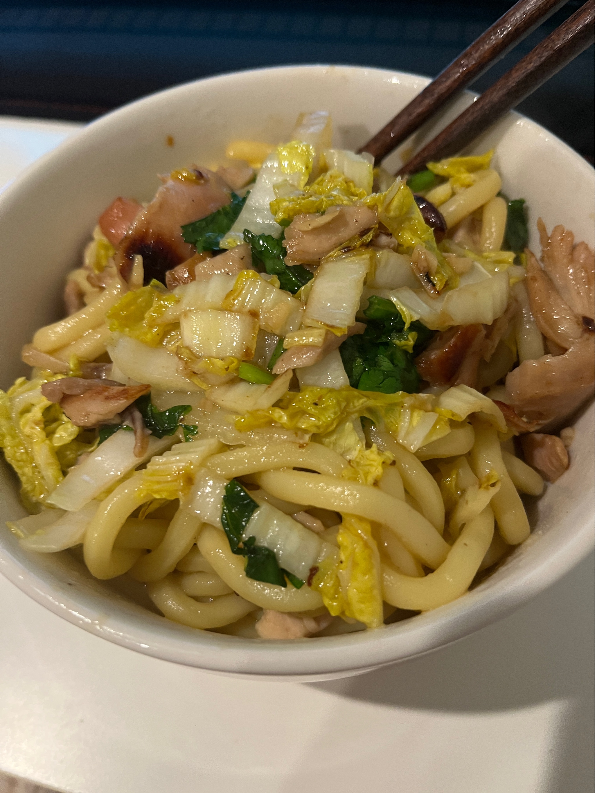 今天吃鸡腿白菜炒面