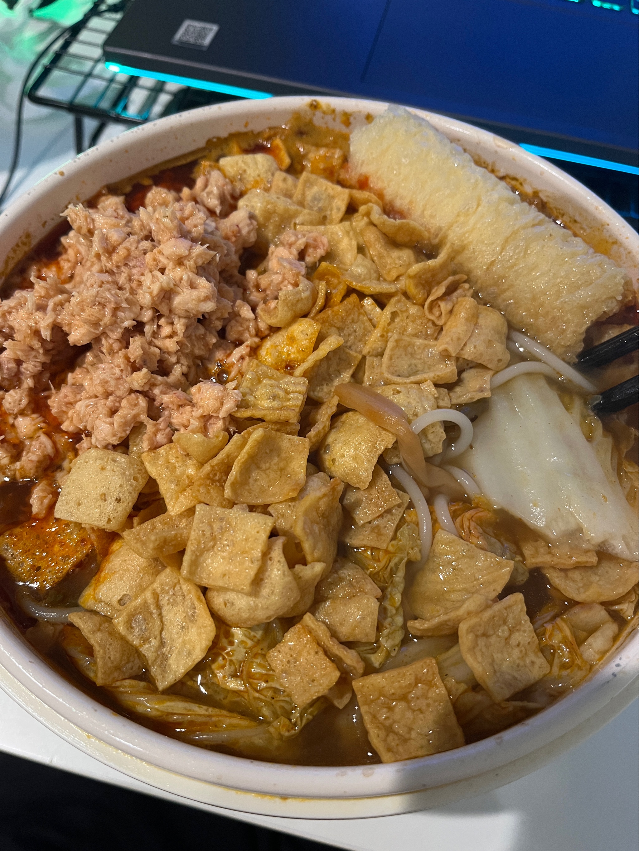螺蛳粉加鲑鱼罐头和白菜(*゚∇゚)