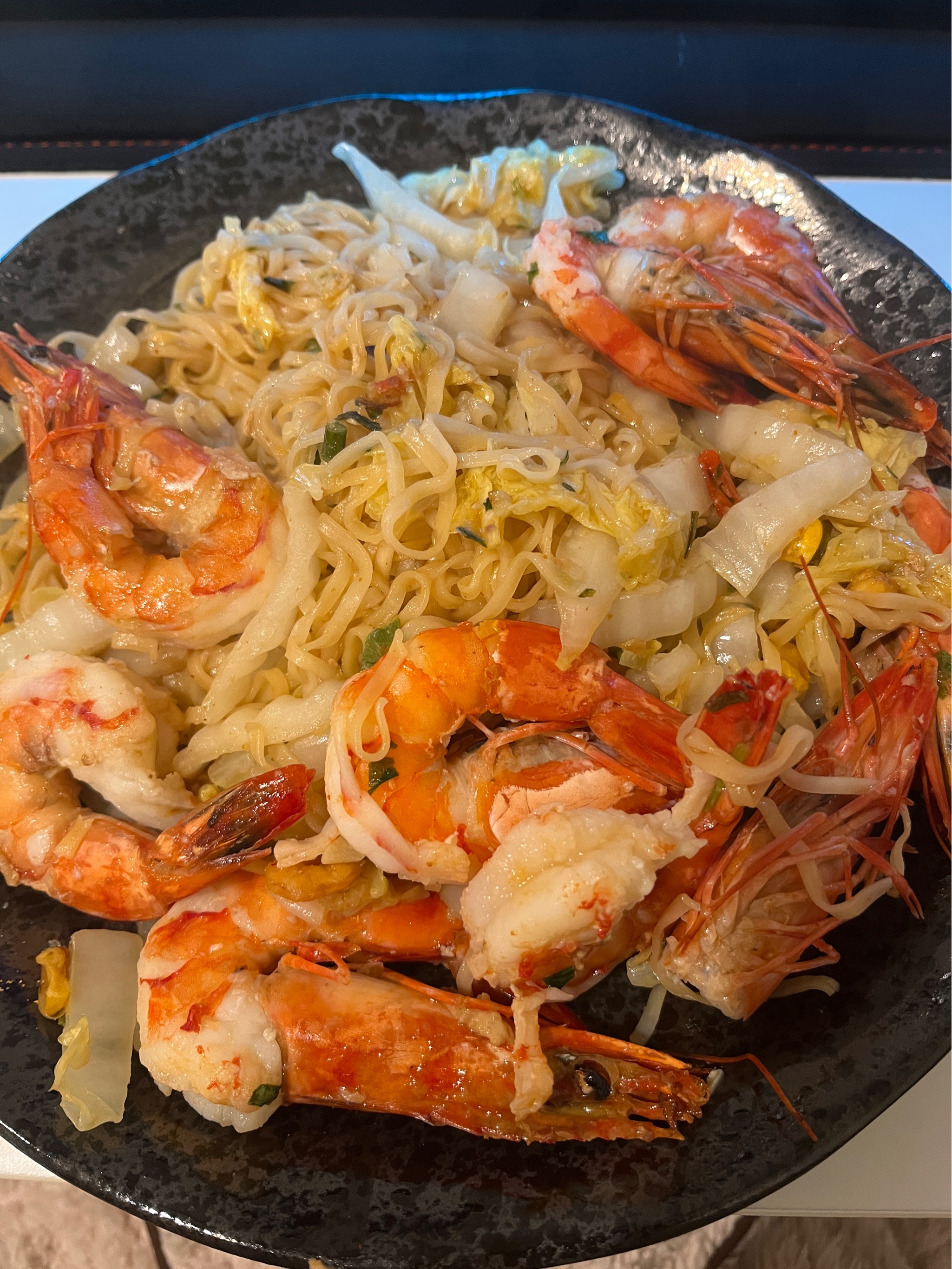 今天吃蒜香虾炒面