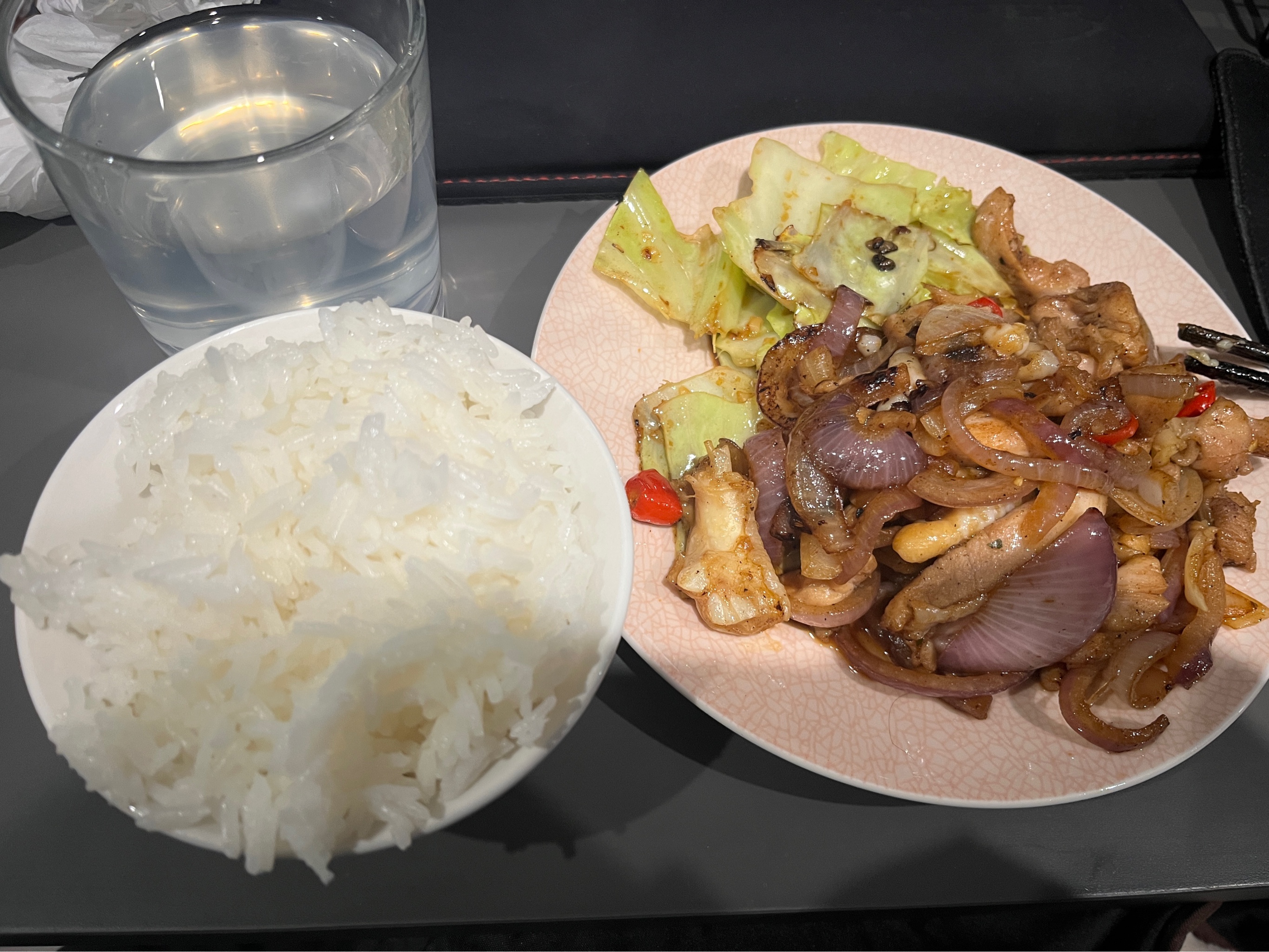 今天炒了一个蒜蓉莲花白和洋葱鸡腿肉。买了一瓶李锦记的蒜蓉酱,这样就不用买新鲜大蒜了,新鲜大蒜有点贵贵的