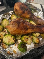 烤了鸡腿和孢子甘蓝,清空冰箱
