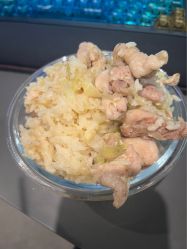 今天随便焖了个蒜香鸡肉饭。终于搬完家了。今天刚买的新米,连着好几天不是吃kfc就是泡面了|-` )
