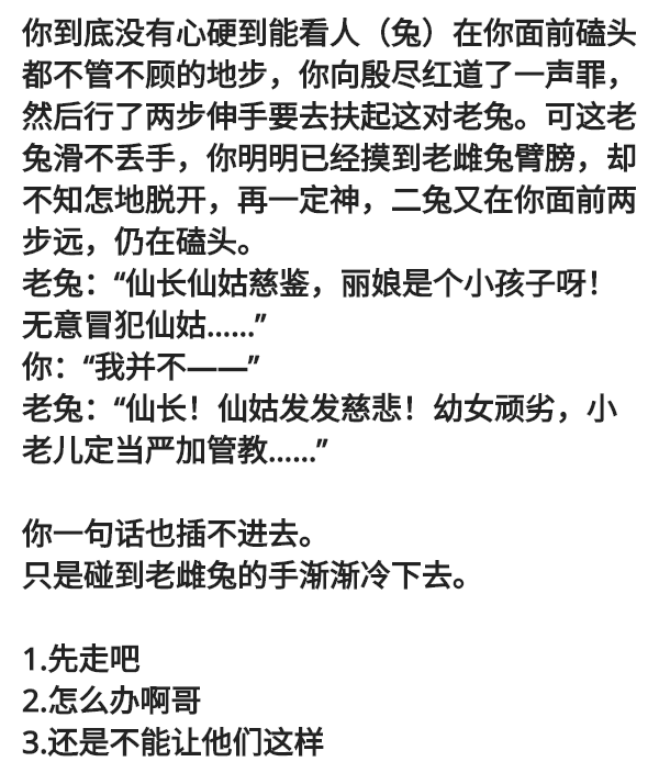 他连看也不看雌兔一眼,低头对你说:“随我来。”