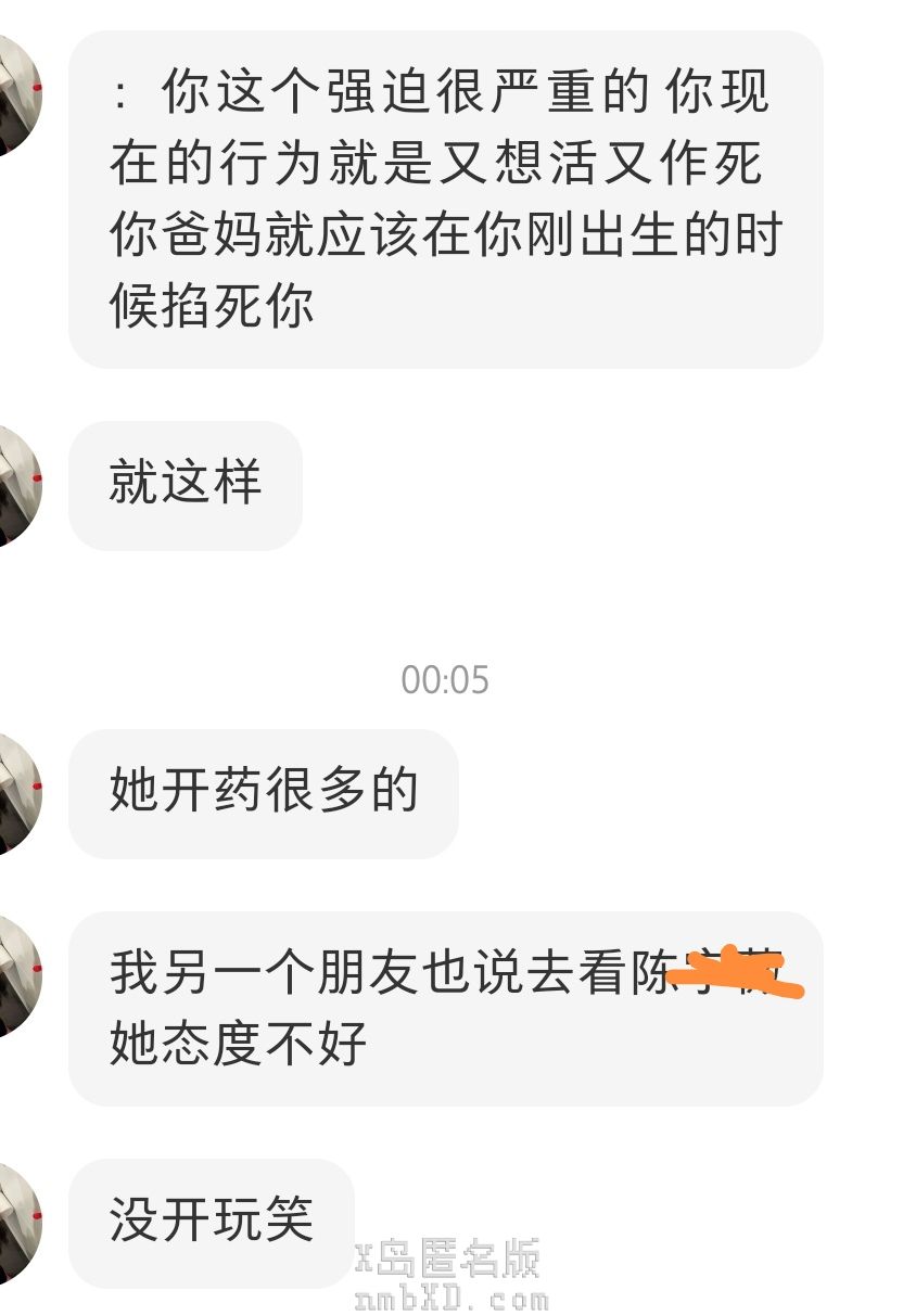 『 你这个强迫很严重的你现在的行为就是又想活又作死你爸妈就应该在你刚出生的时候掐死你 』