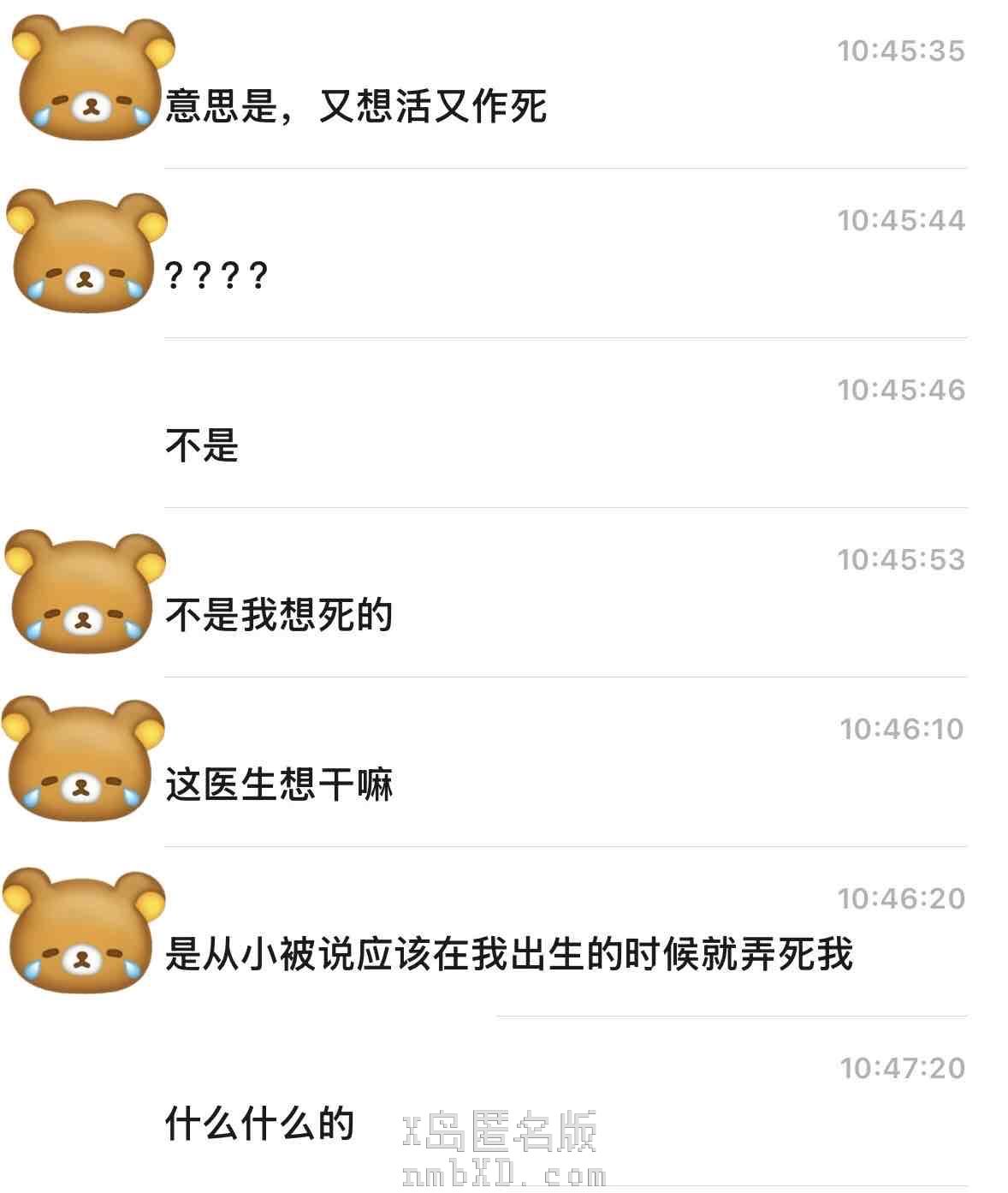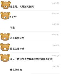 但是作为同样深受抑郁症折磨的一个朋友身份(朋友的朋友),我还是有点看不下去被人这种方式对待而且以一个病人的身份,至少我一直以为心理医生都是有人道主义关怀的(肥我挂号挂的医生都是非常好的医生),但是这件事情发生之后,使我的认知遭到了不小的冲击