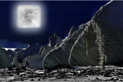 他说刚才他没看见月亮,我叫他的时候他就只看见月亮隐藏在山后面露出的那点月光。