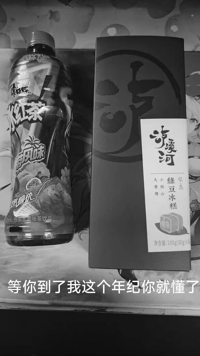 一个视频主发的大学生考试复习周破防视频,视频中不断品尝热带风味冰红茶好喝已经泸溪河绿豆糕
