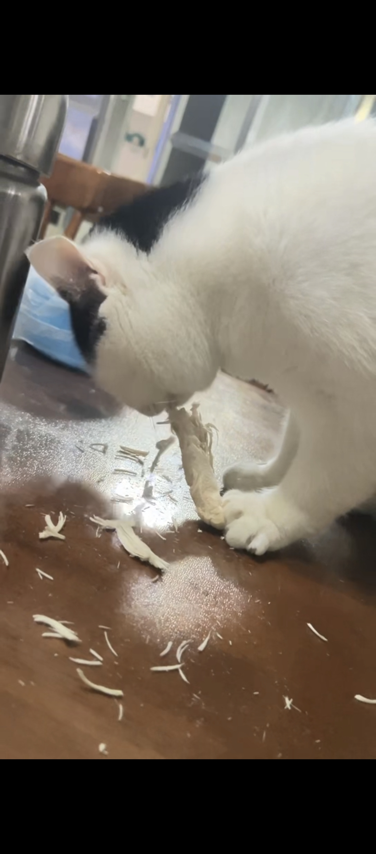 抓着鸡胸肉开始撕