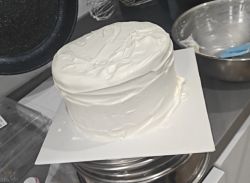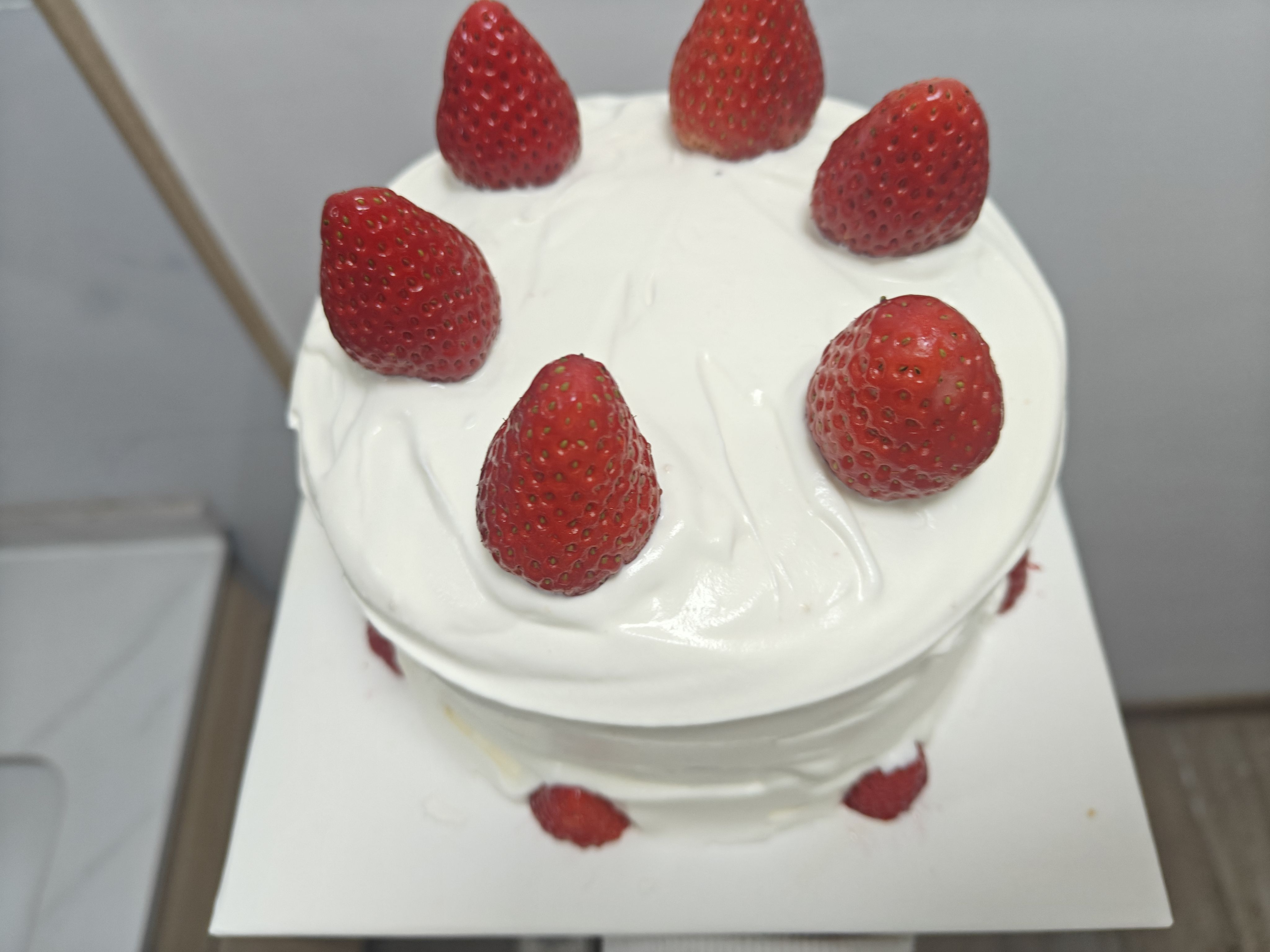 忘附图了,前两天的蛋糕胚做出来的小蛋糕两片原味一片香橙,夹心是草莓和芒果切丁,抹面难,早知道整点专业工具