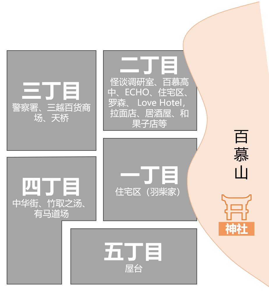 七个怪谈分别对应的地点: