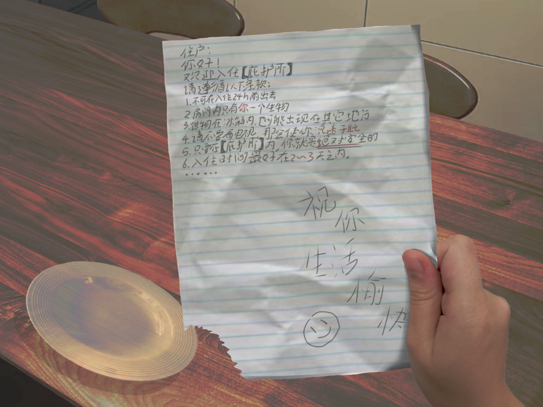 又开始纠结了,究竟要不要出房间门看看,房间门一直都是开着的,但外面很黑,而且之前那两个调查员也跟我说了不要在只有自己一个人的时候乱走。