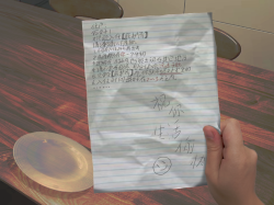 上面还写着文字,不过字迹比较难认,有点像小学生写的(?)