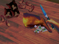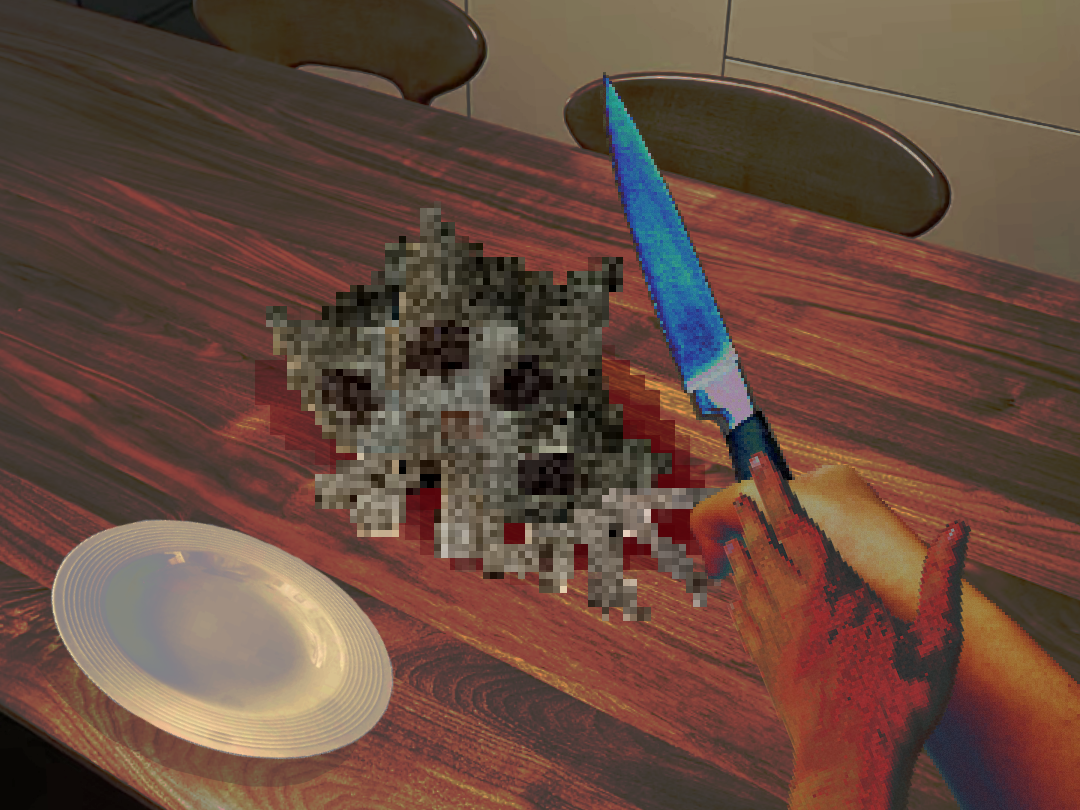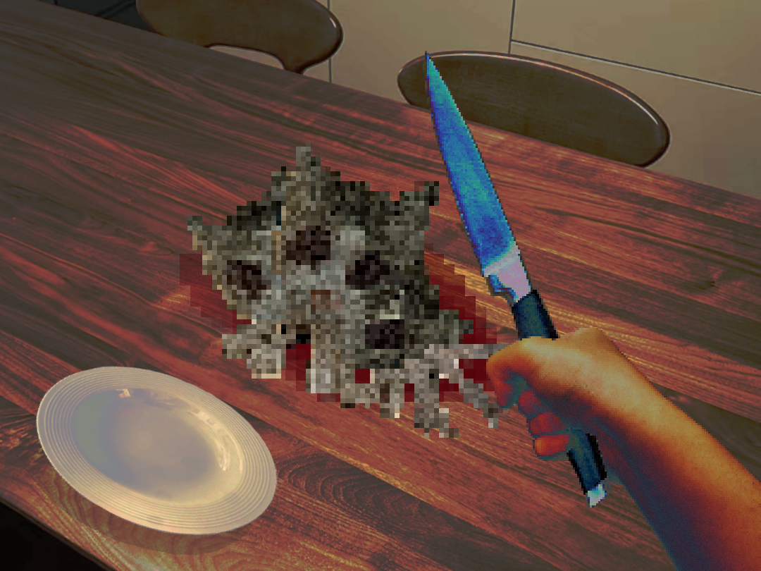 还好那只猫走的很慢,但是杀掉它依旧费了些时间,既然没有其他活物,那猫猫一定就是“食物”了吧?