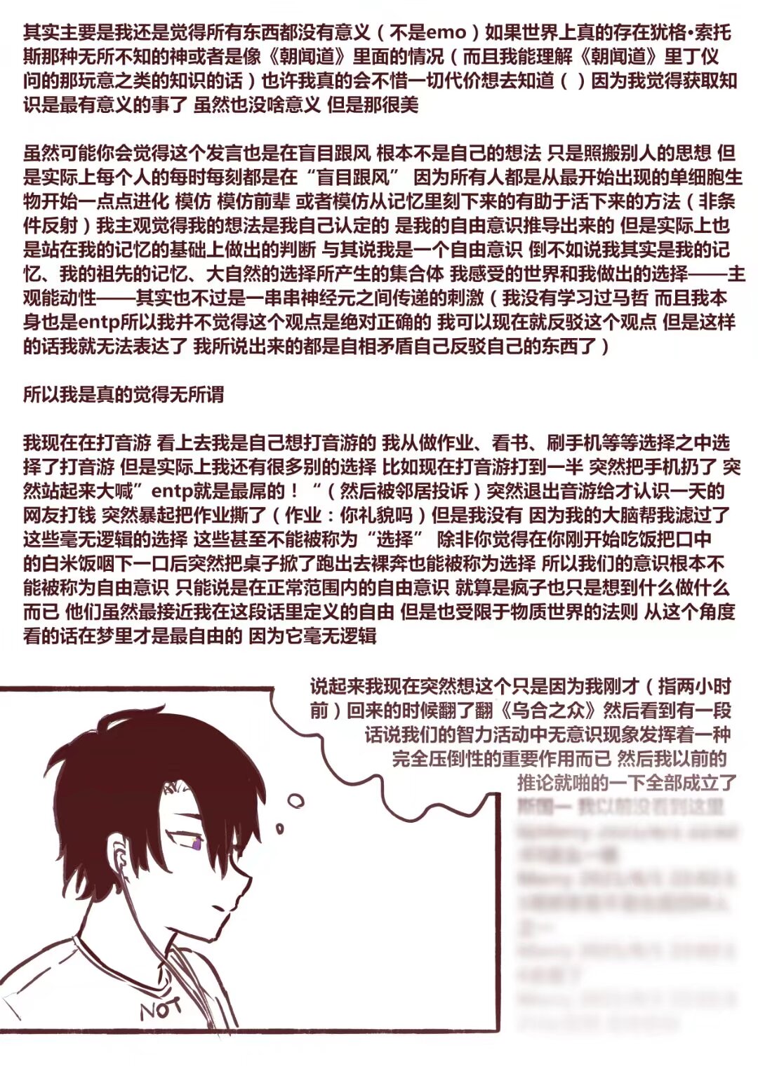 漫画脚本到底该往什么方向写呢 写着写着就觉得角色太OOC了 然后逃之夭夭 但我真的很想画这个漫画啊( ;`д´; ) 好想看壬鸟动起来 好想 在漫画里动起来也是动起来 但是画成壬鸟中心向的后果就是搞得像all壬一样 其他角色全部ooc 壬鸟本身也ooc 然后就是很ooc 痛苦