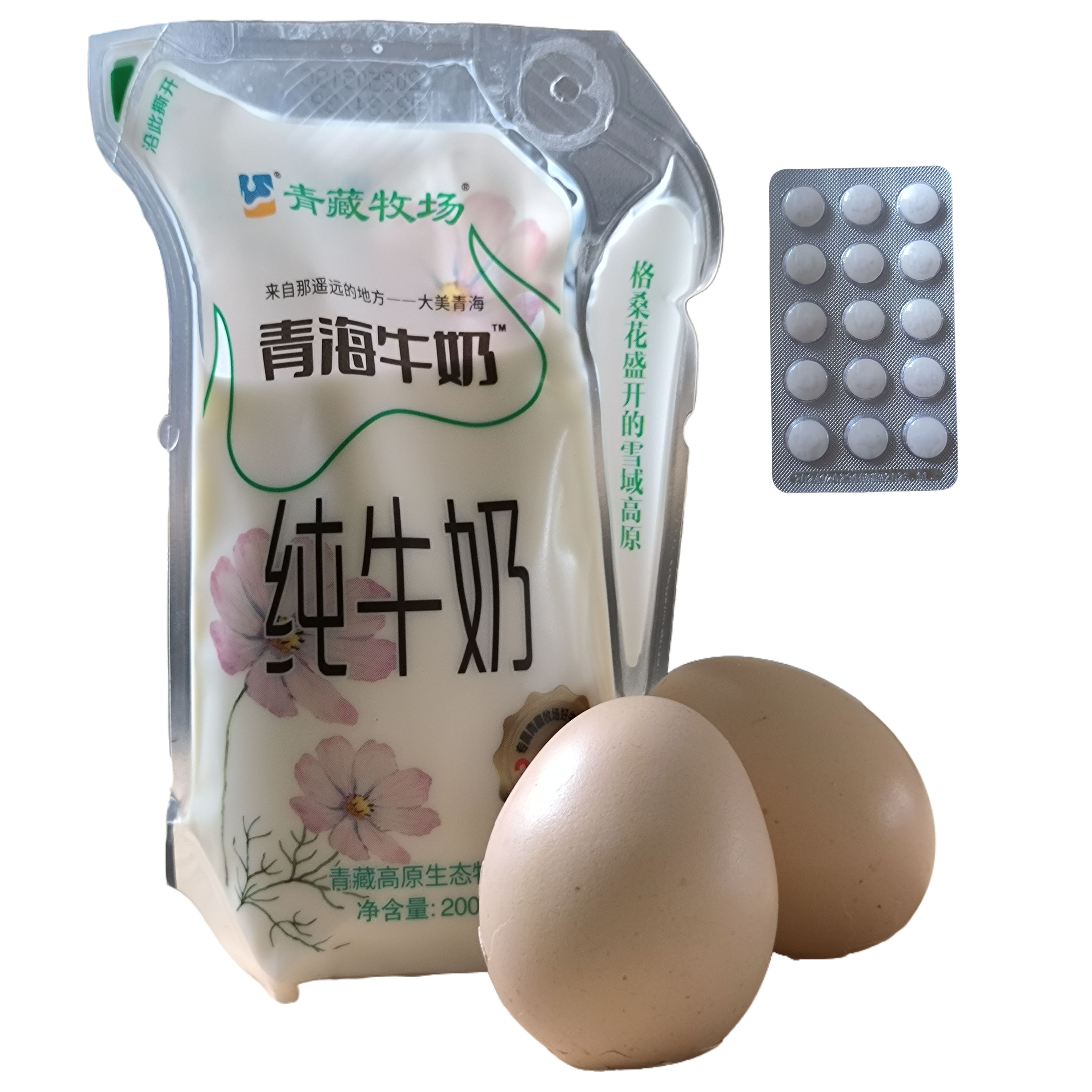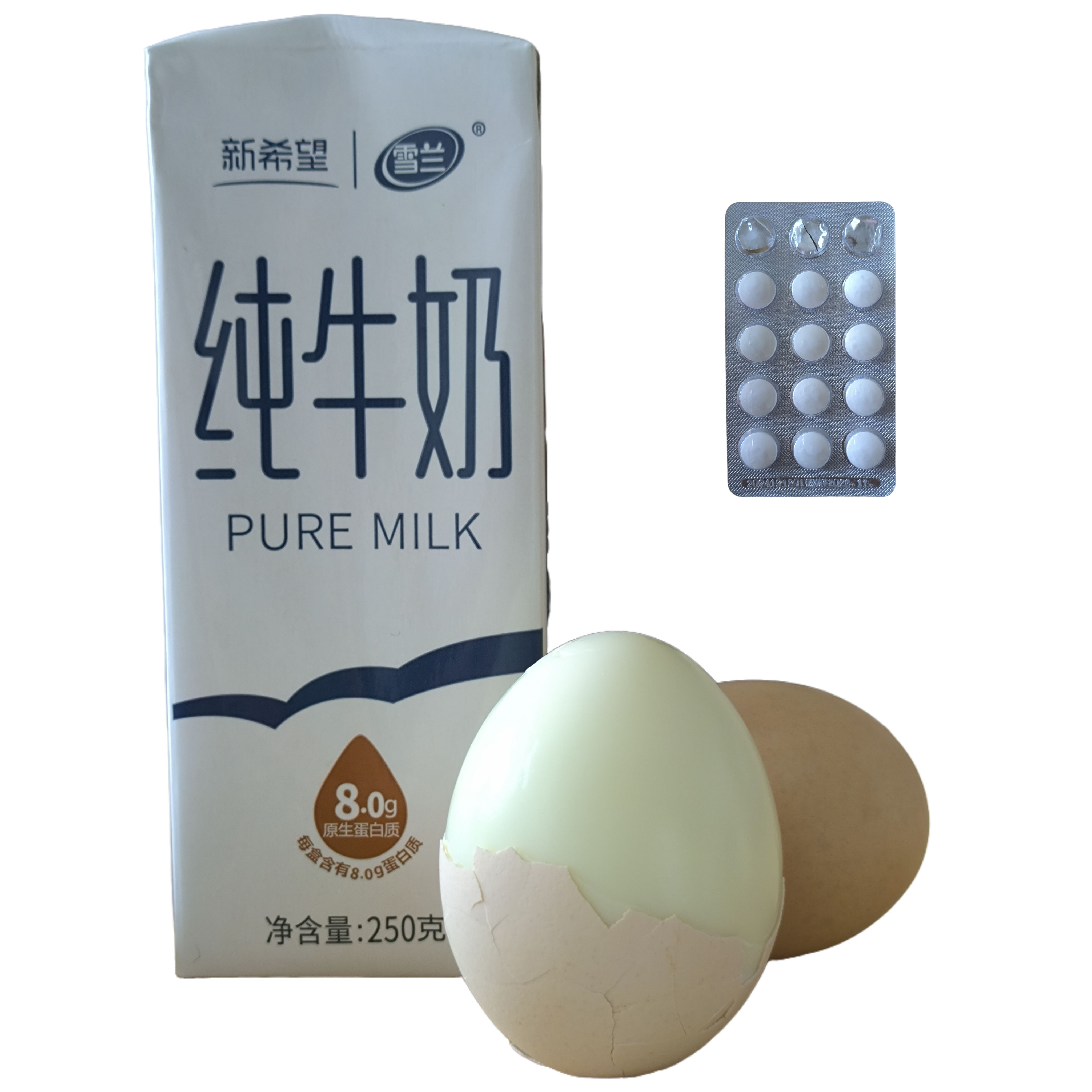 鸡蛋、牛奶、500ml水、药