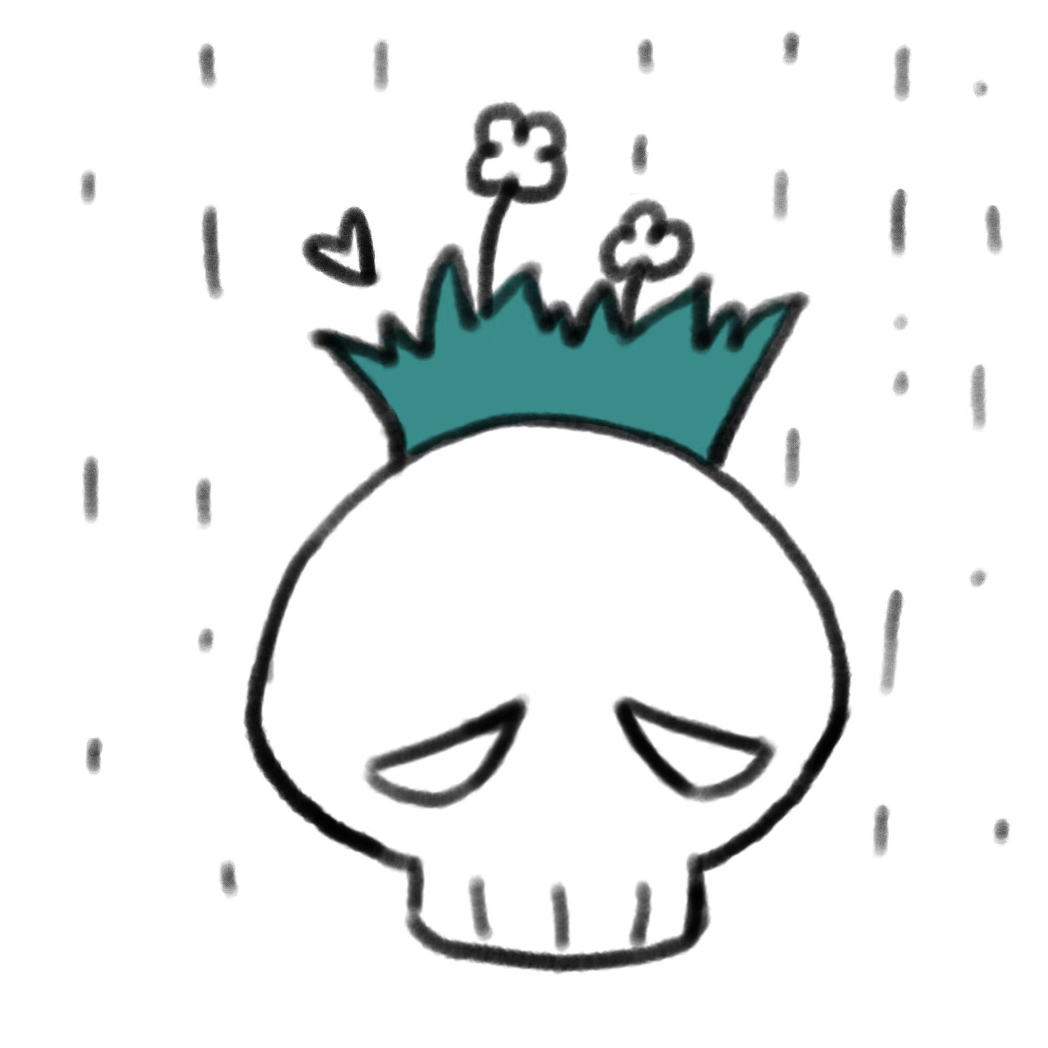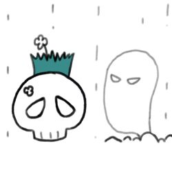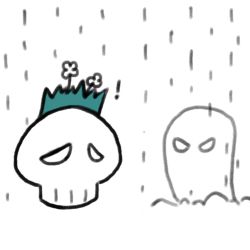 雨小了一些,大概很快就会停了。小草把新开的花送给骷髅头,它似乎没有那么沮丧了。