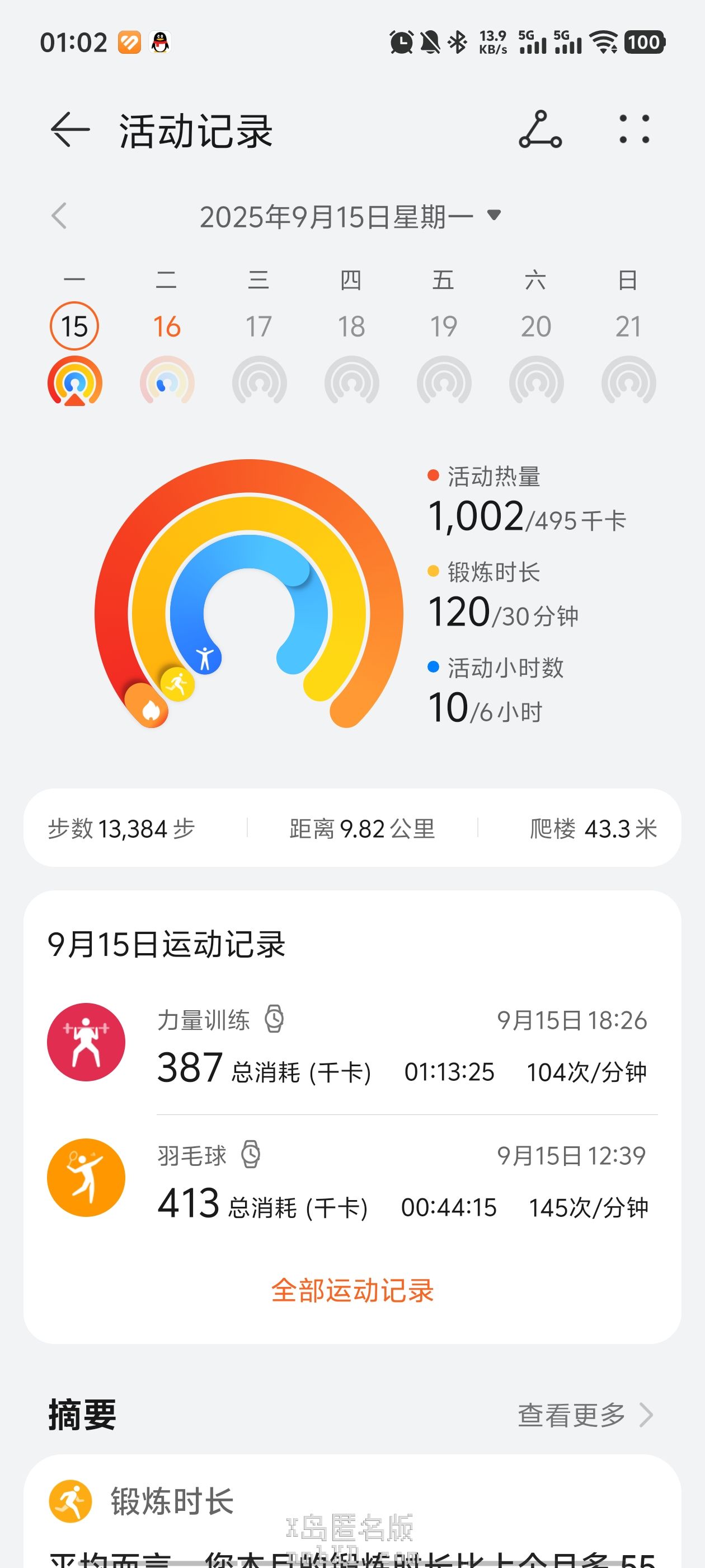 一小时背部手臂+16分钟羽毛球步伐练习