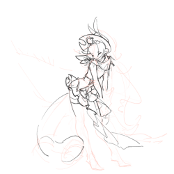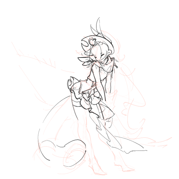 复杂的设定如果只是先画人体然后堆服装而不打草稿就会出现这种没有重点整个一团的情况。