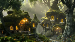 那个精灵护送着你在树干边缘崎岖的路上走过了漫长而陡峭的木制栈道,随后,你们来到了巨树上的一处空地,视野豁然开朗了起来