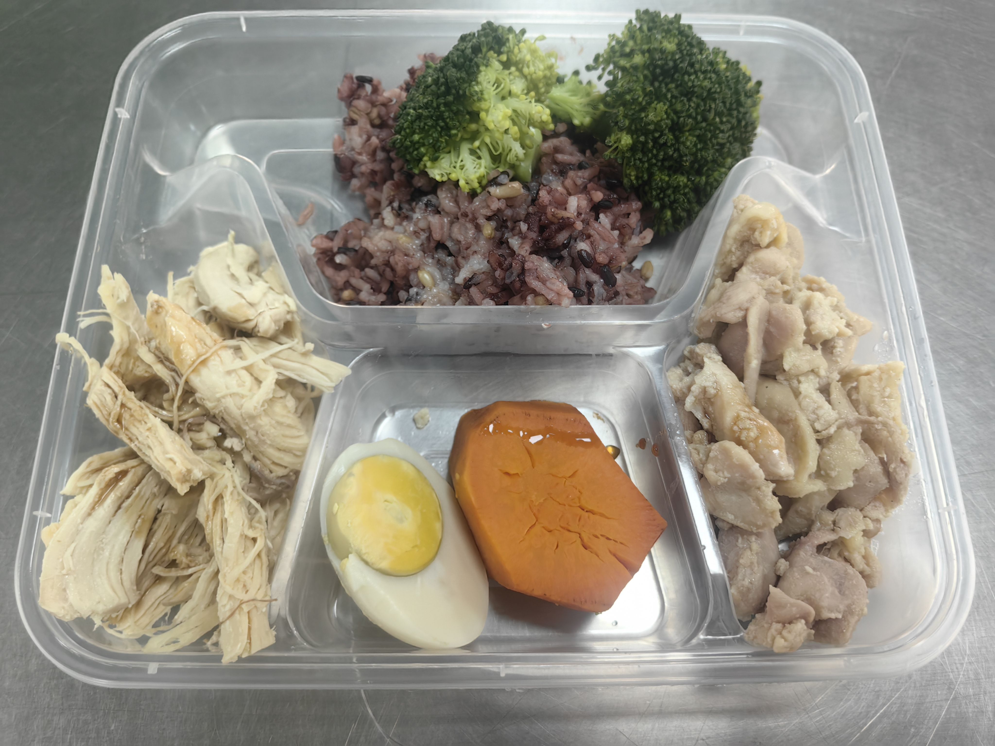 如果家里有锅的话,这种做起来很简单的,西蓝花只要水煮就好;煮鸡胸肉的时候放一些葱姜料酒去腥,想要调味可以稍稍加些盐;糙米饭交给电饭锅