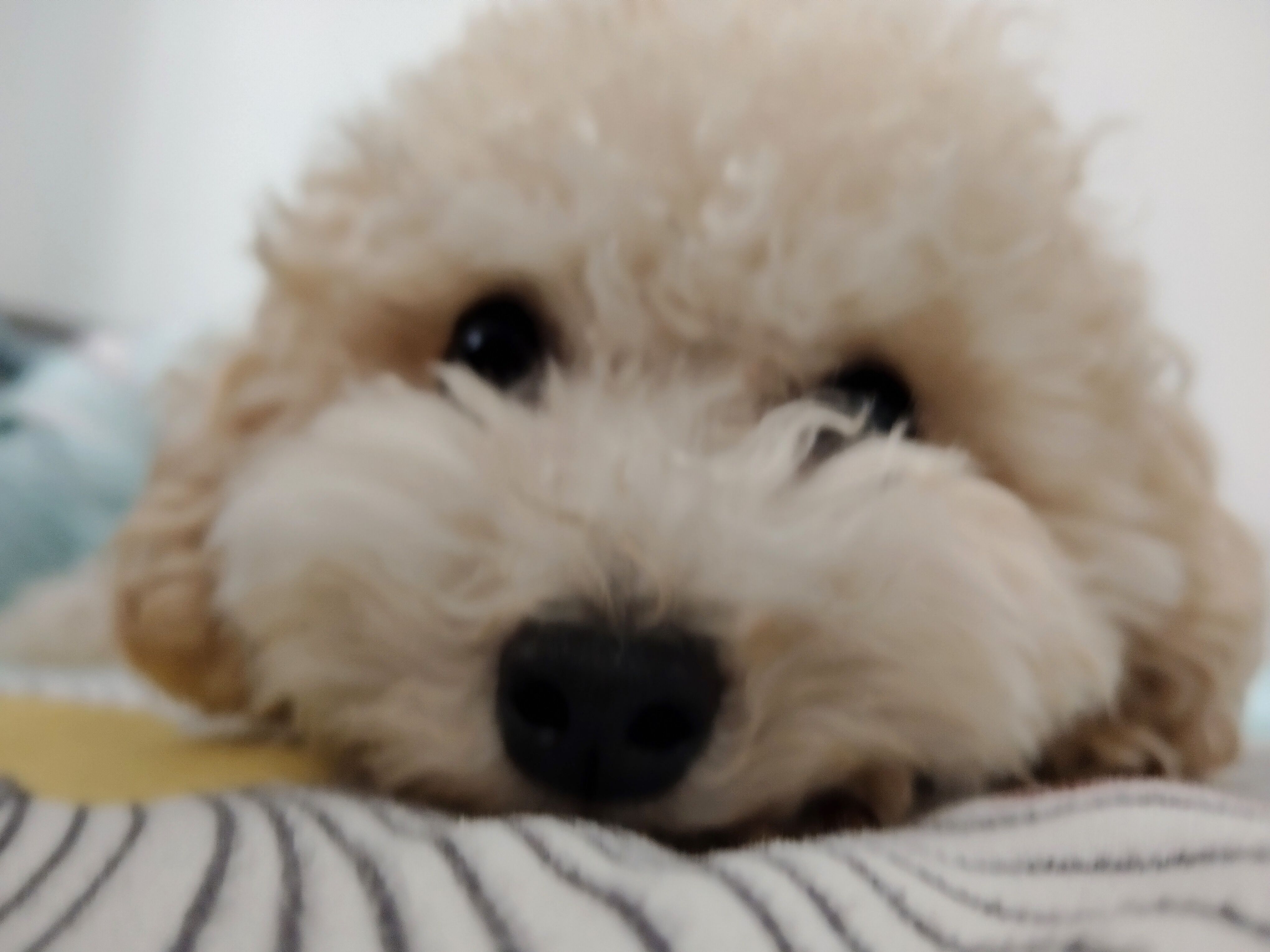 记不清了反正是到家第一天,晚上不愿意睡狗窝,应该是害怕客厅太黑,就让它来我房间,进来之后得寸进尺一直扒拉床沿,还跳不上来,抱上来之后一直偷偷打量我