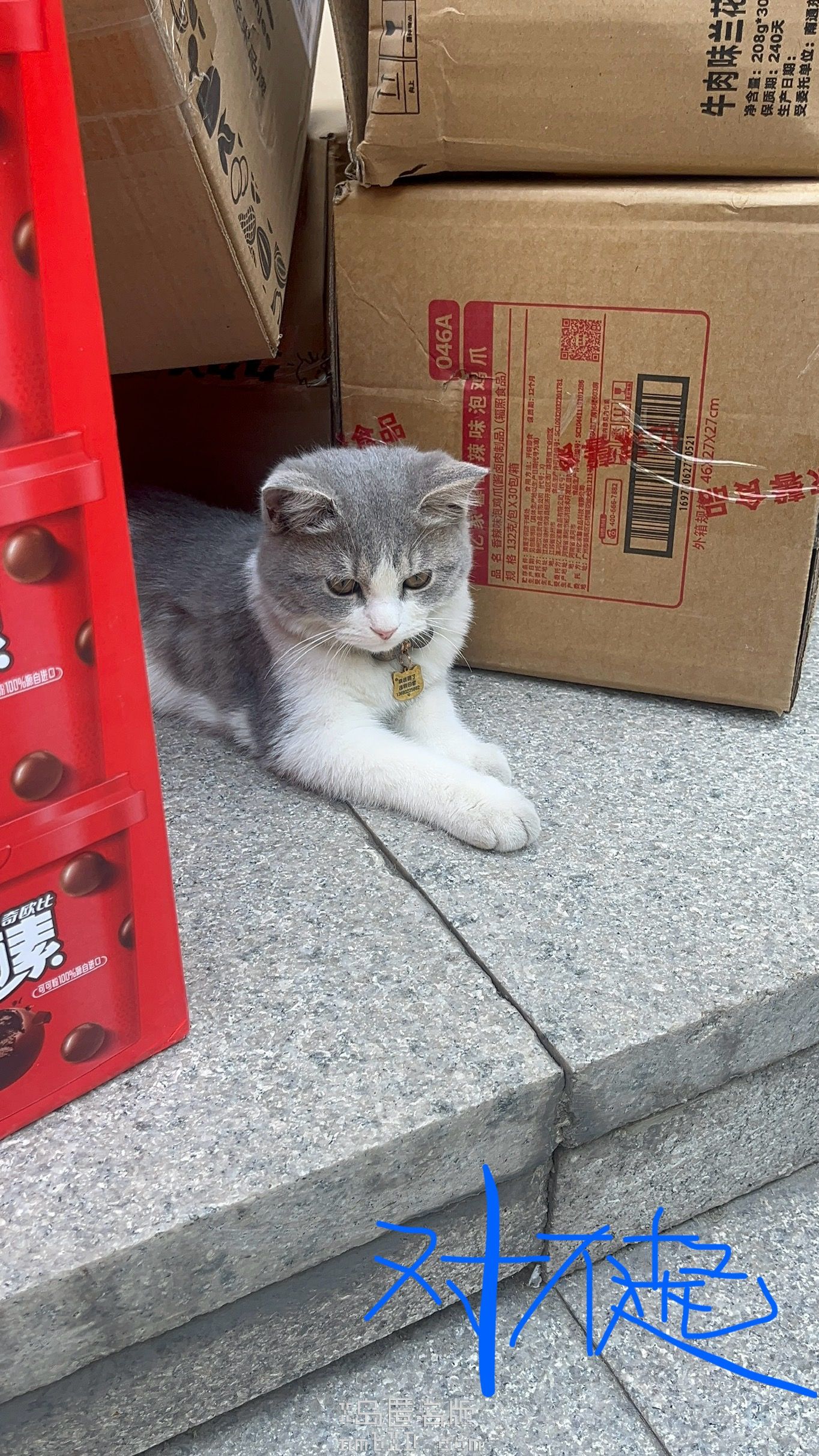 问了店长,说是隔壁打印店的猫。我有印象,我去他们家打印过一次东西( ´_ゝ`),有只猫猫在电脑桌上蹿下跳的,原来就是它呀( ´∀`)