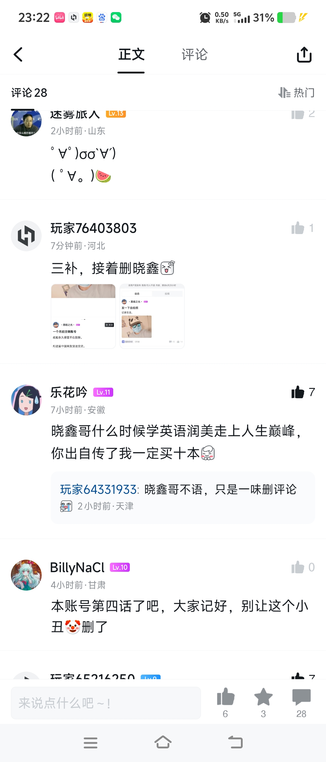 上午我就骂他了,但楼中楼评论好像也被晓鑫删了
