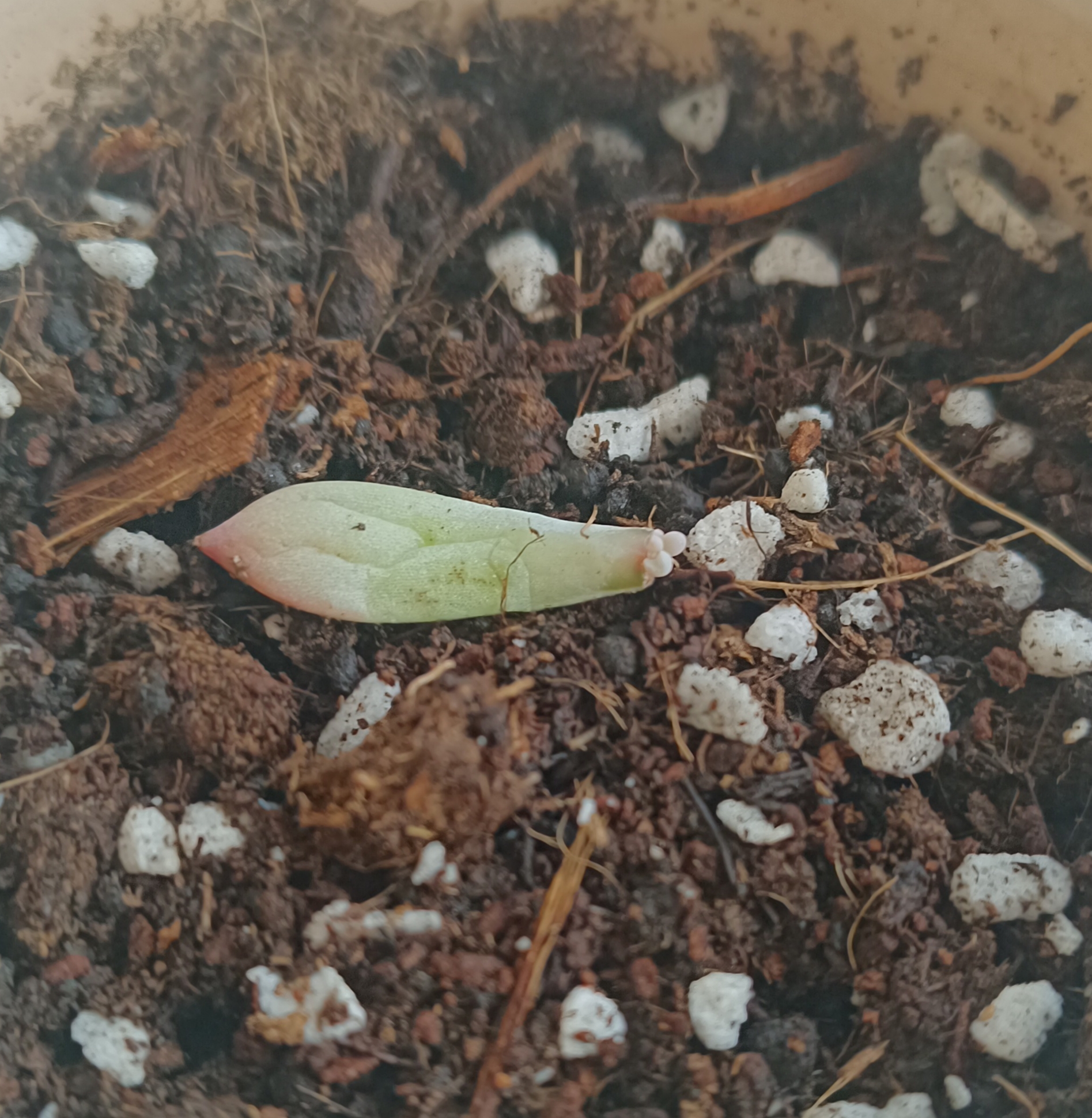 莫名其妙长了芽和根的某种多肉叶子